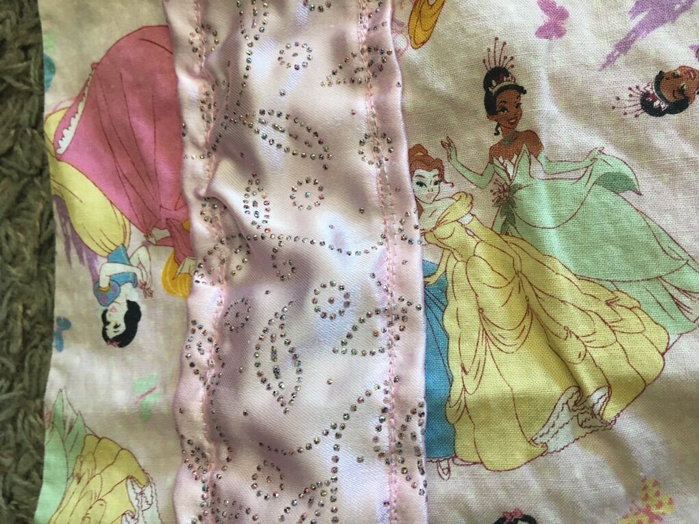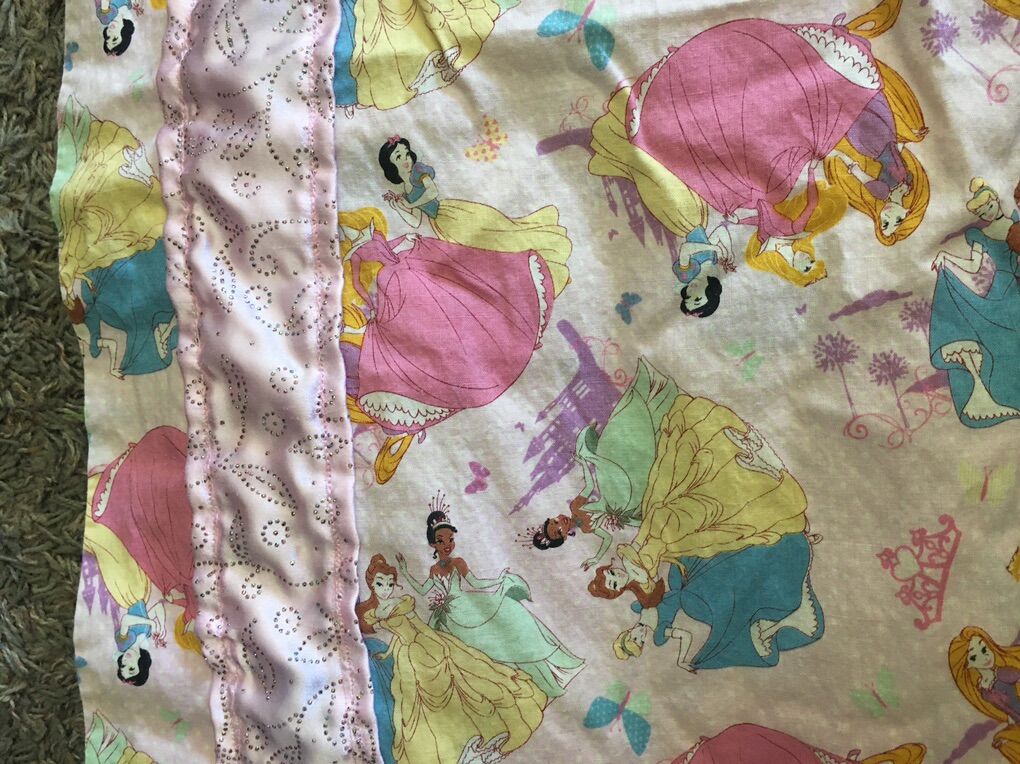 PayPalHomemade Disney Princess Valance Curtain to adorn your room and decorate with your love of Disney Princesses. 2 types of material to add some glitter. Measurements: 107 in length and 22 1/2 in height. Pinkish-Peach Color Princess pattern and Pink/Silver Glitter