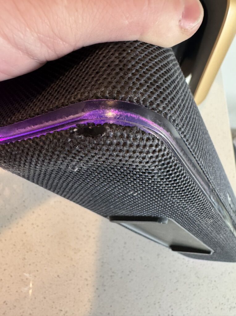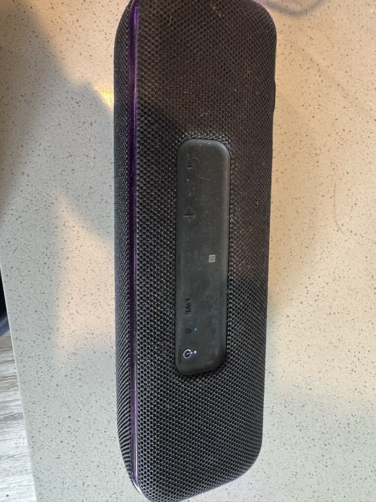 VenmoPortable Bluetooth speaker. Sounds amazing and works great a few wear spots but doesn’t affect it in anyway. Battery stays charged for a long time.