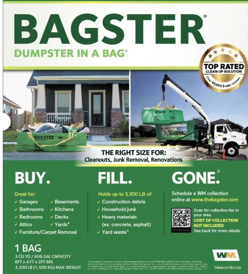 Versatile Use: Bagster disposable bin for trash, waste, and debris, ideal for home improvement projects and big cleanups.
