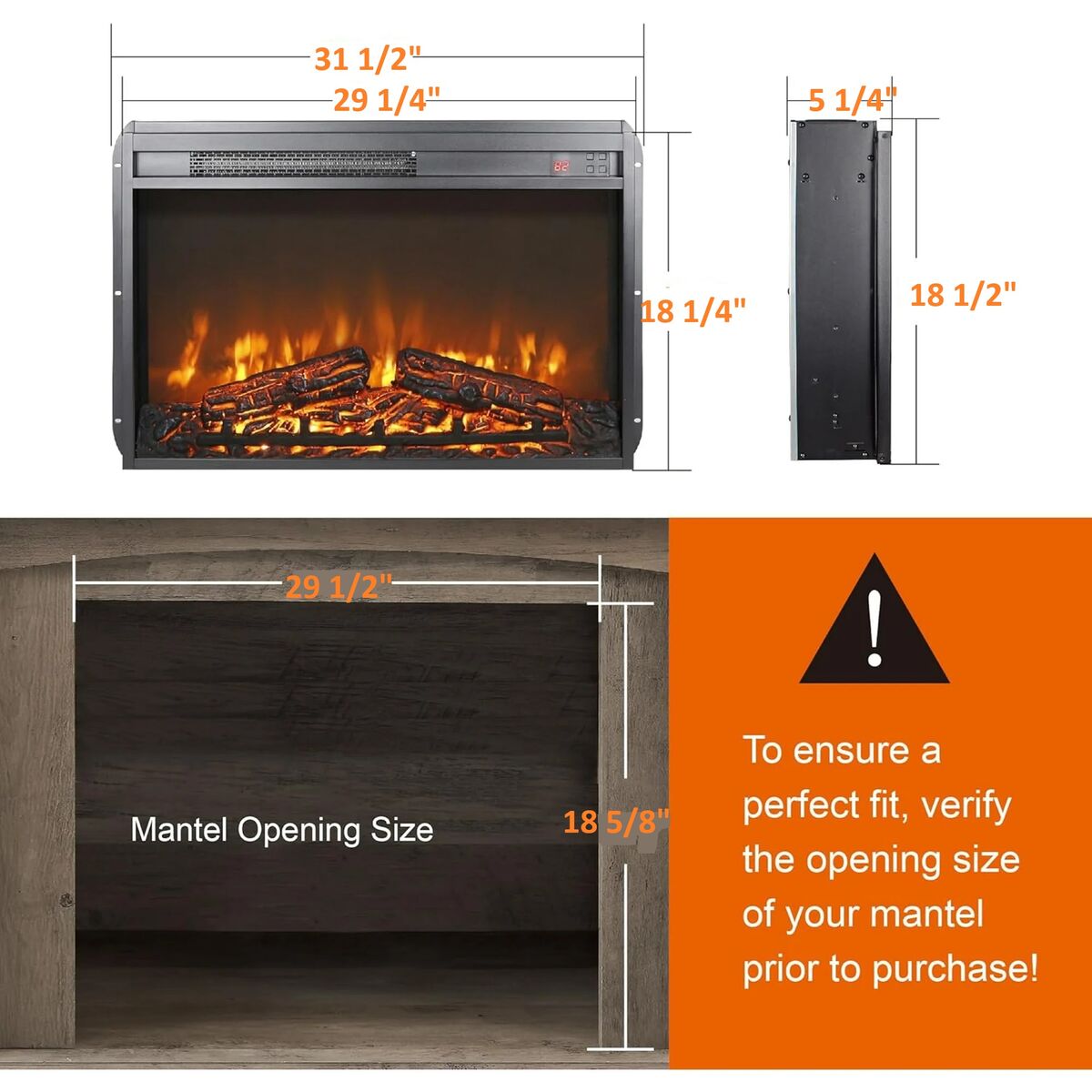 Retailer's title: 30" Electric Fireplace Insert, Electric Fireplace Heater with Remote/Timer, Adjustable Flame Brightness, Digital Display, Log Set, Low Noise, Overheating Protection, 1400W(30.25" X 18.7")