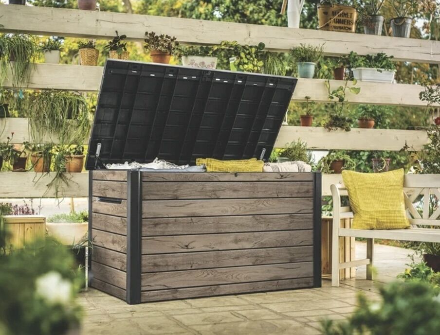 Durable and Low-maintenance patio storage solution is designed for long-lasting enjoyment Combines durability with aesthetic appeal, crafted from robust resin to look like natural wood Ultra sturdy lid has a weight capacity of 286 lbs Made of waterproof resin material, will not fade, rust, peel, or rot Compact with side handles built in for easy and comfortable transport Lockable lid keeps your belongings safe and secure Easy to clean and assemble