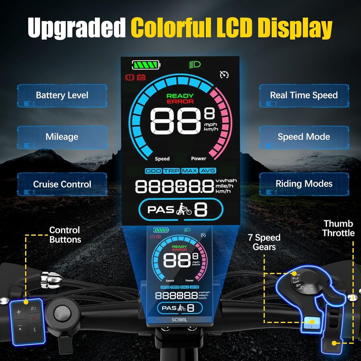LCD Display: The LCD display typically shows information such as speed, battery level, and pedal assist level.