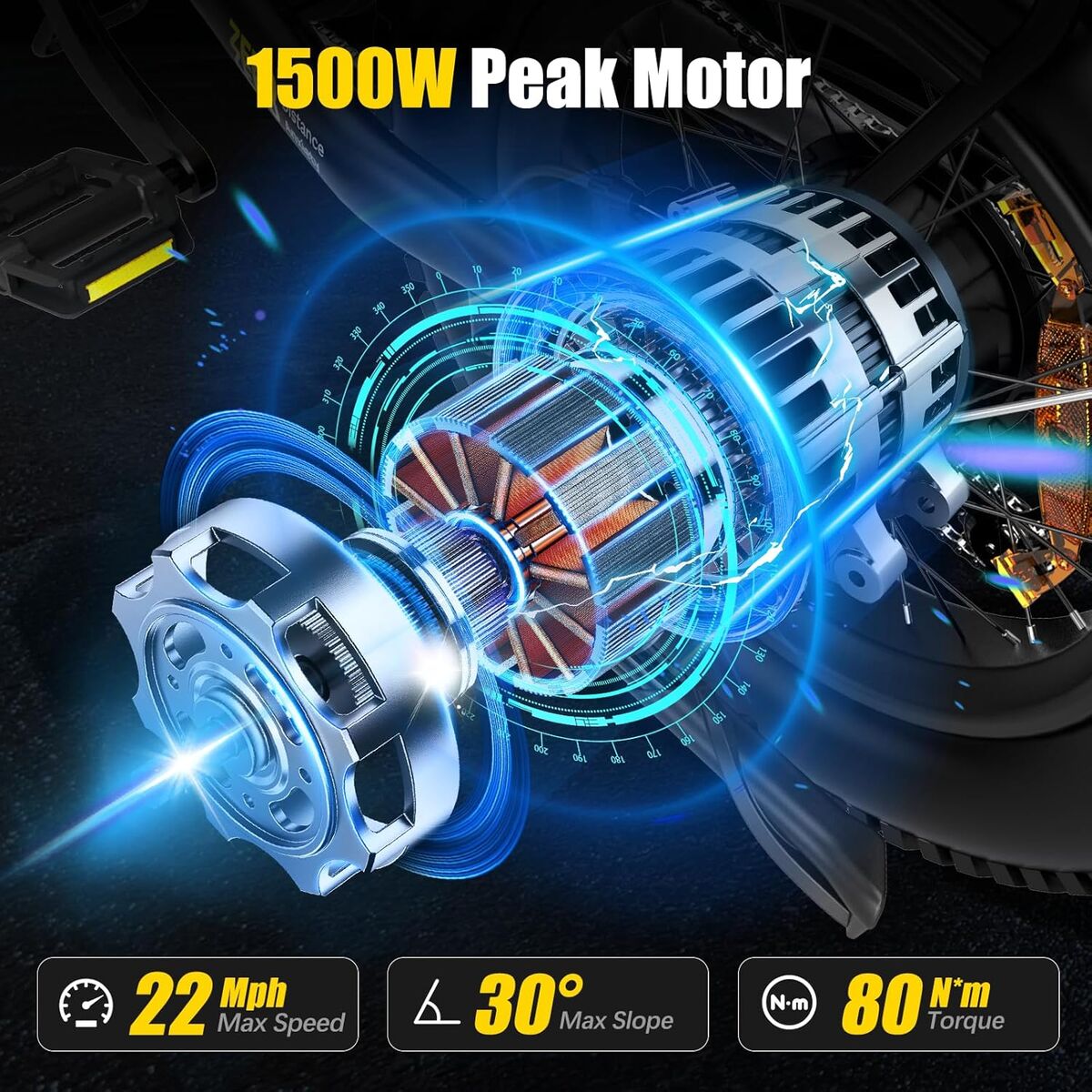 [๐๐๐๐๐ ๐๐๐๐ค ๐๐ข๐ ๐ก ๐๐๐ซ๐๐จ๐ซ๐ฆ๐๐ง๐๐] - ZA03 folding electric bike is equipped with a 1500W peak power motor, which allows the ebike to reach 35km/h top speed and conquer 30ยฐ slope, beaches, mountains, snow, and city streets effortlessly. It is powerful enough to give you a pleasant riding experience.