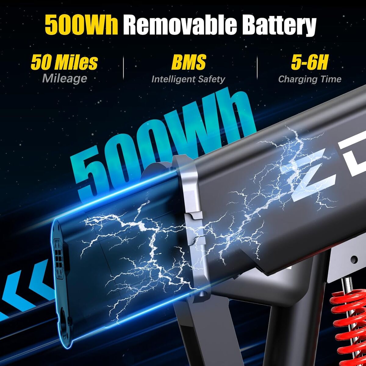 [๐๐๐ซ๐ ๐ ๐๐๐ฉ๐๐๐ข๐ญ๐ฒ ๐๐๐ฆ๐จ๐ฏ๐๐๐ฅ๐ ๐๐๐ญ๐ญ๐๐ซ๐ฒ] - ZA03 electric bike for adults has a 500Wh rechargeable and removable lithium battery. It could guarantee a range of 50 km in pure electric mode and 80 km in PAS mode, so you don't need to worry about power consumption. The battery equipped with BMS provides multiple types of protection, making batteries safer and longer battery life.
