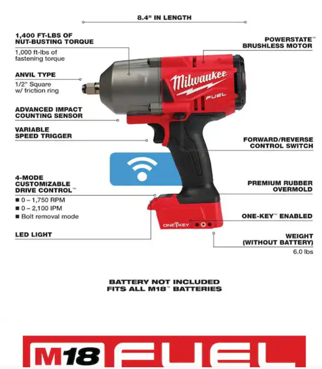 Milwaukee M18 Fuel 1400 lb-ft High Torque, One-Key, with friction ring.