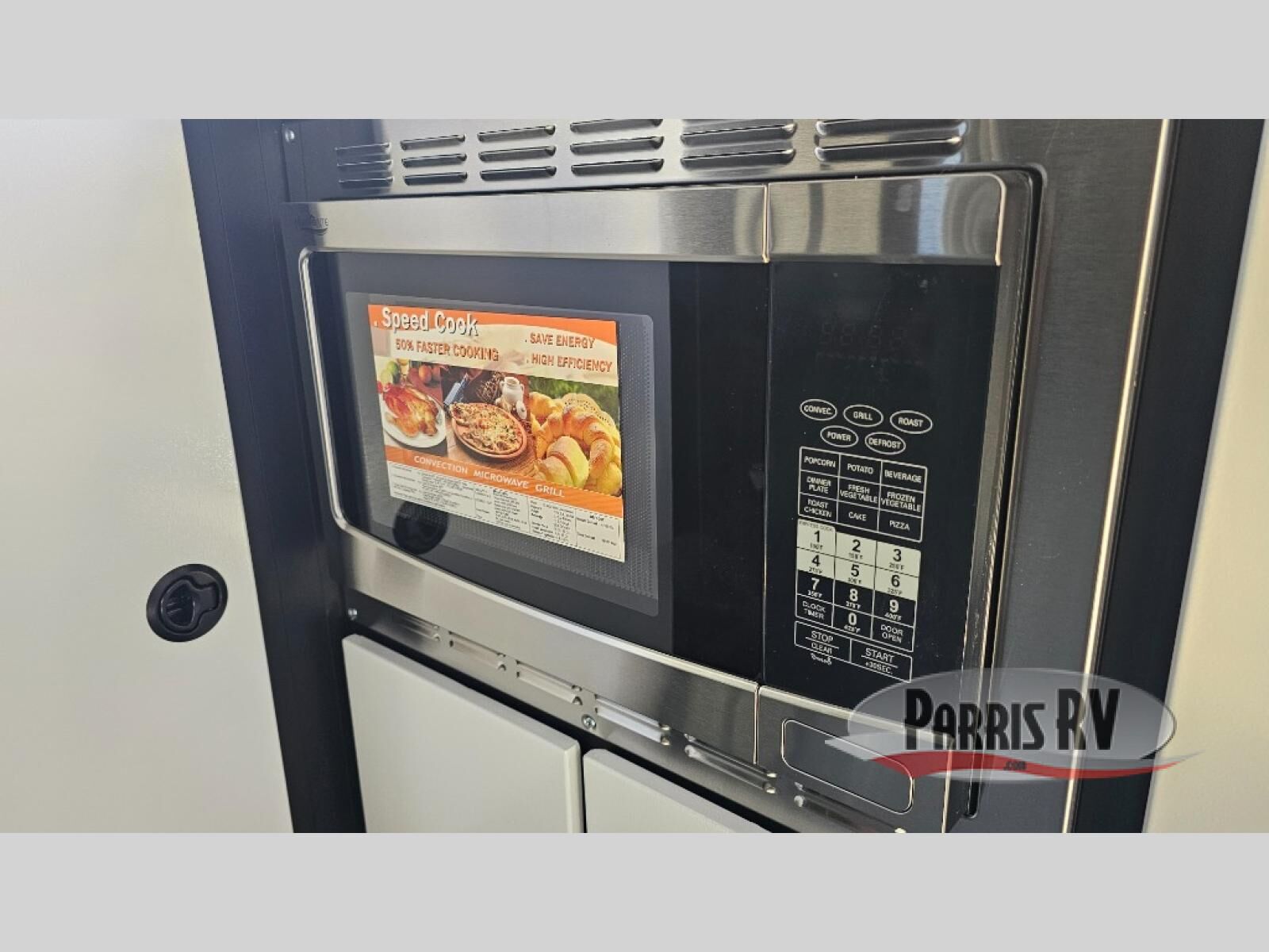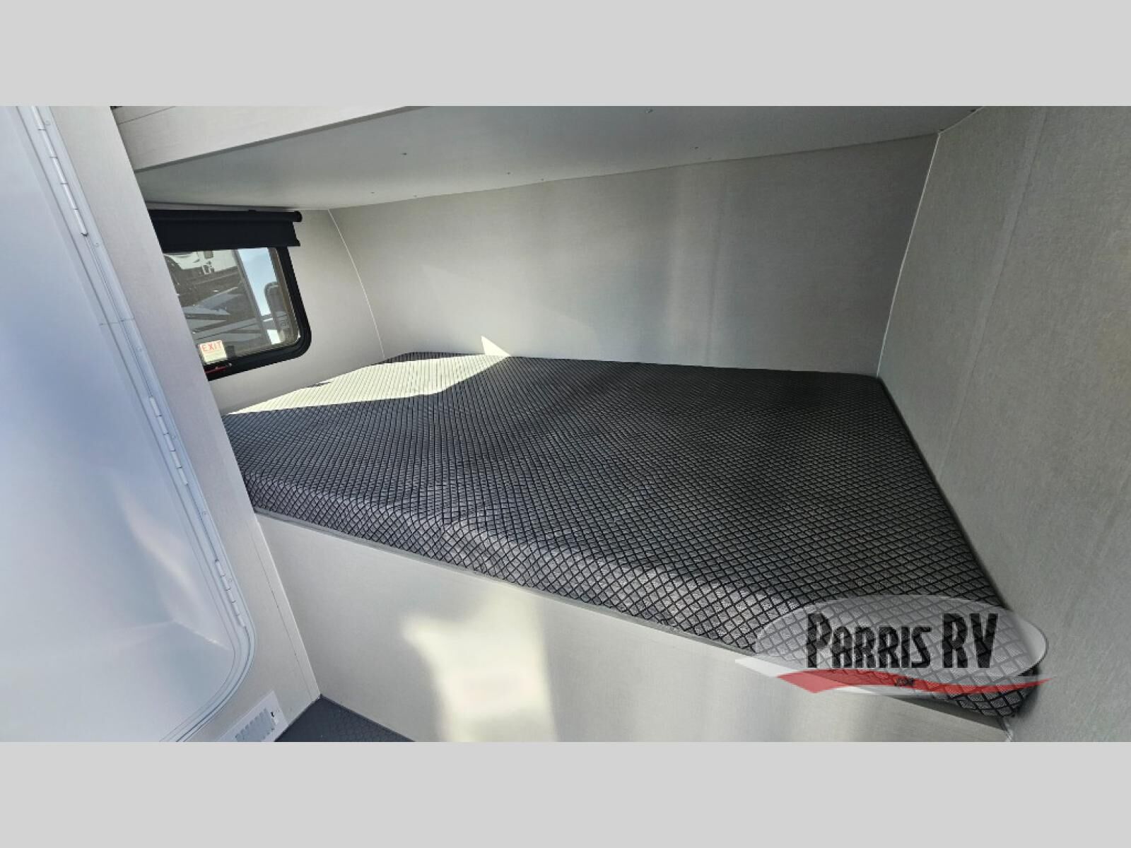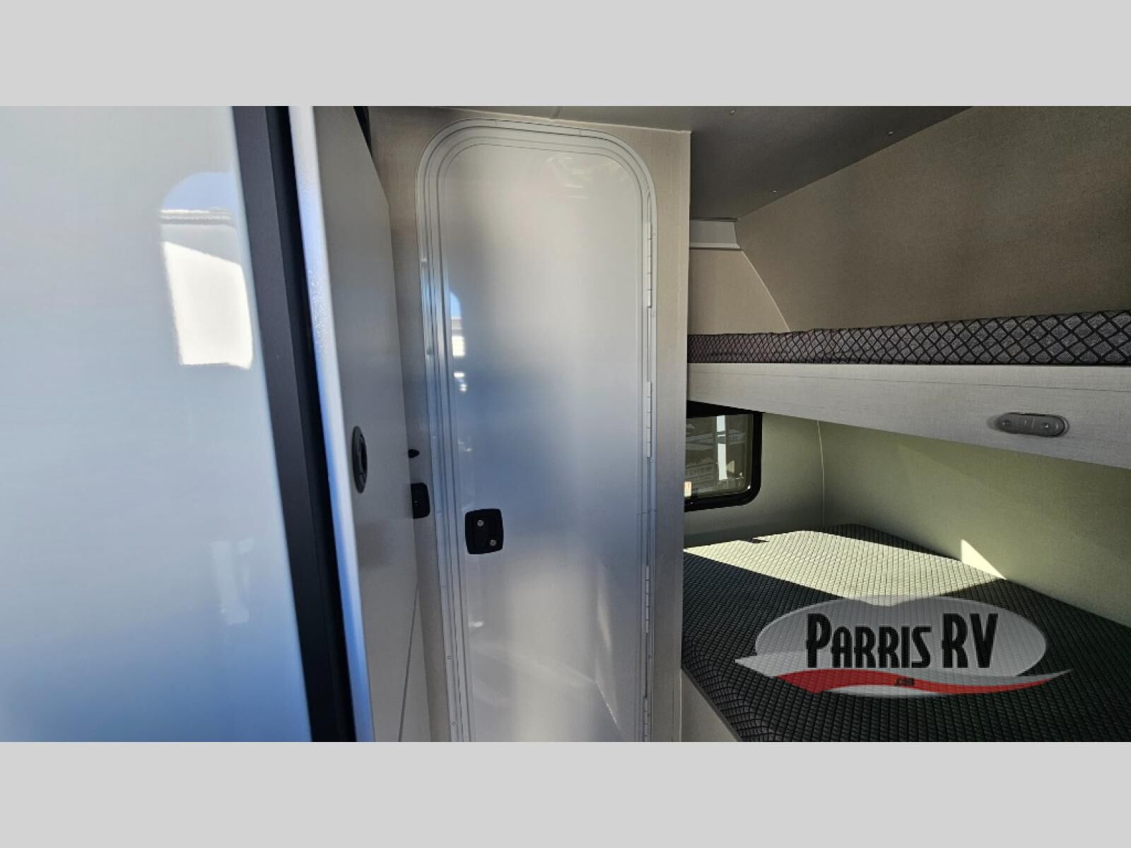 Grab your riding helmet and load up your bikes in this toy hauler! Once your toys are unloaded from the cable-less ramp door with non-slip tread, you can add an optional sleeper sofa to relax, then make lunch in the kitchen. There is a flush mount two burner LP cooktop and a convection microwave, plus a 12V refrigerator to store leftovers. The wet bath includes a shower and porcelain toilet so you can freshen up after a trail ride, and the front bunk beds will provide a great night's rest. And an optional Happijac queen bed can be added in the garage for even more sleeping space if needed!