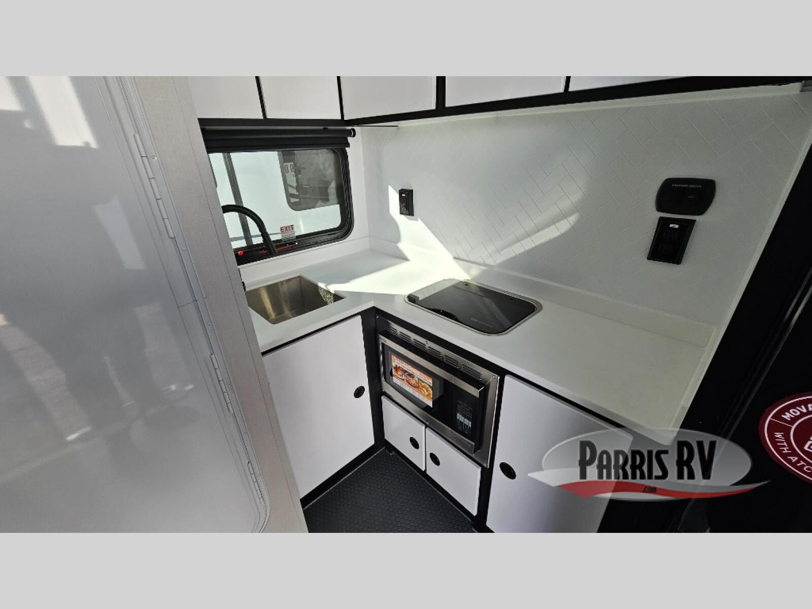 If you're ready to escape your busy weeks for weekends at the lake, this toy hauler is for you! Your kayaks will fit perfectly when you use the space all the way up to the front kitchen, and there is a cable-less rear ramp door for easy unloading. There is also an Airline Track tie-down system to keep your gear secure, and an optional Happijac queen bed can be added if you need additional sleeping space other than the sleeper sofa. The front kitchen includes a two-burner cooktop, a convection microwave, and a 12V refrigerator to keep cold items fresh.