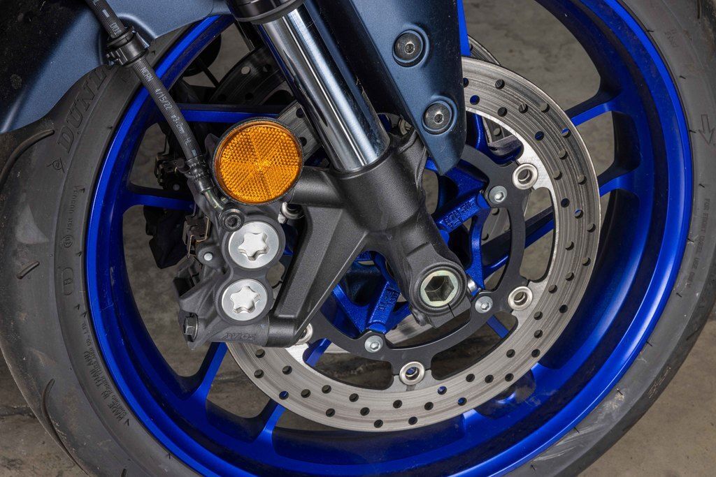 A compact bifunctional - low and high beam in one - LED headlight with excellent beam spread is featured on the MT-09. The edges of the beam have a softer contrast to be easy on the eyes while emitting a soft and even spread of illumination. Instead of the conventional “mono-focus” type headlight, this bike utilizes a projector design with a built-in internal lens in addition to the thick outer lens. Since the MT-09 uses not one but multiple LEDs to produce light, it can project a complex distribution of illumination across a broad field. The position lights use LEDs and light-guides to create an impressive, distinctive new front face design for the MT-09 while the turn signals and newly designed LED taillight are LED as well.