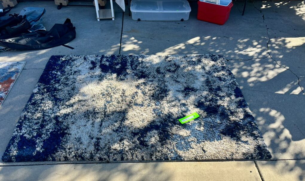 VenmoBeautiful thick shag rug. Measures 5.5 Feet by 7.5 Feet Veey comfy on the feet!