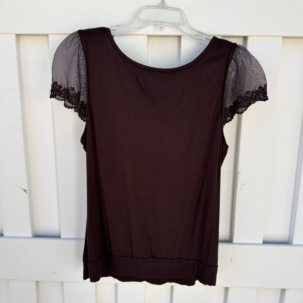 VenmoWomens Hillard & Hanson Lace Sleeve Shirt Size: Large Color: Brown Pet & Smoke Free