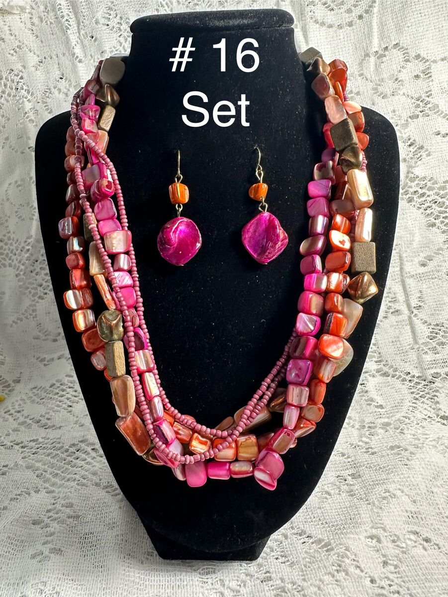 Pink & Organge Shell and Bead Necklace & Earring Set