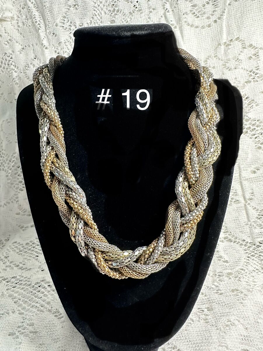 Vintage 80's Liz Claiborne, Woven two tone, 5 strand, Metal Mesh Collar Necklace.