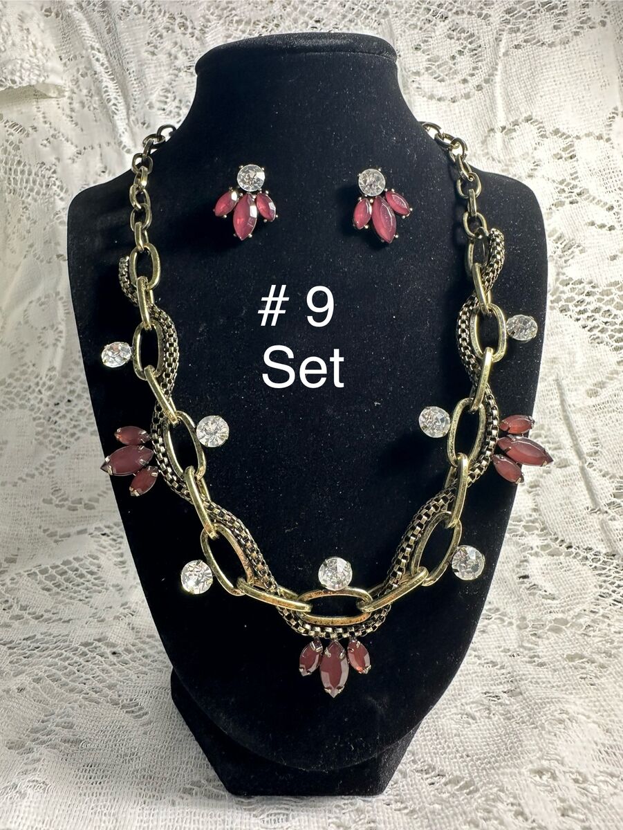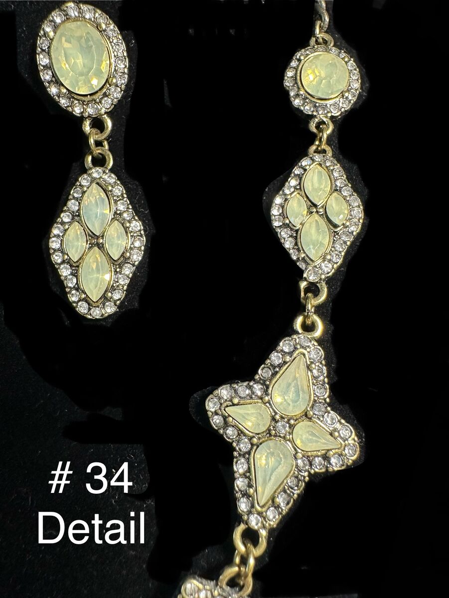 Creamy Stone shapes with rhinestone surround. Necklace and Earring Set.