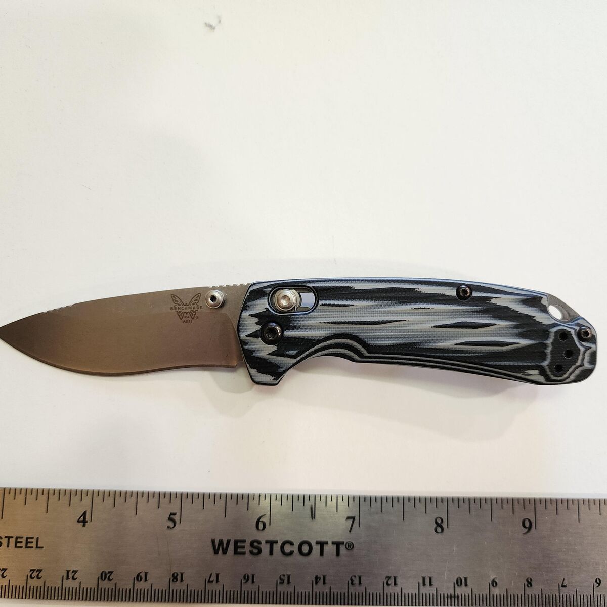 Benchmade North Fork Folder Knife 15031-1, new in box, never used. CPM-S30V steel. Discontinued. The G10 plastic finish handle feels like driftwood.