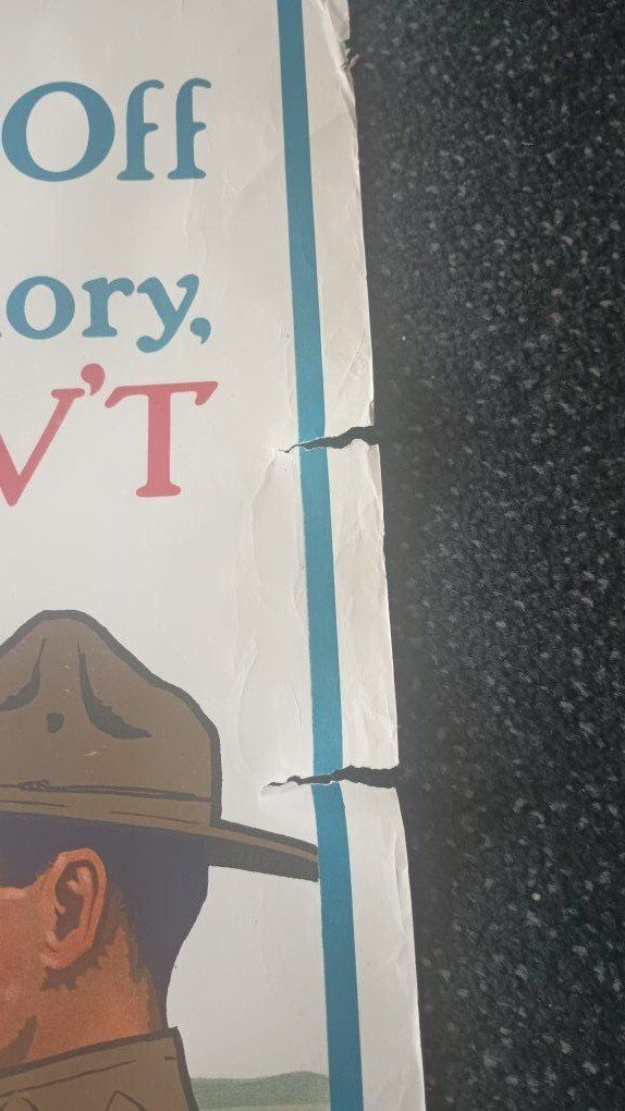 "Good bye, Dad" World War 1 propaganda poster for the 3rd bond drive by Lawrence Harris. The size is 20x30. it does have 2 small rips approx. 1 in. on the right side. 107 years old. $100. text is best.