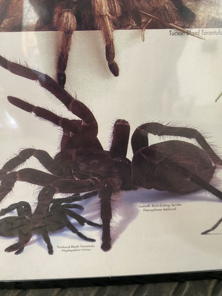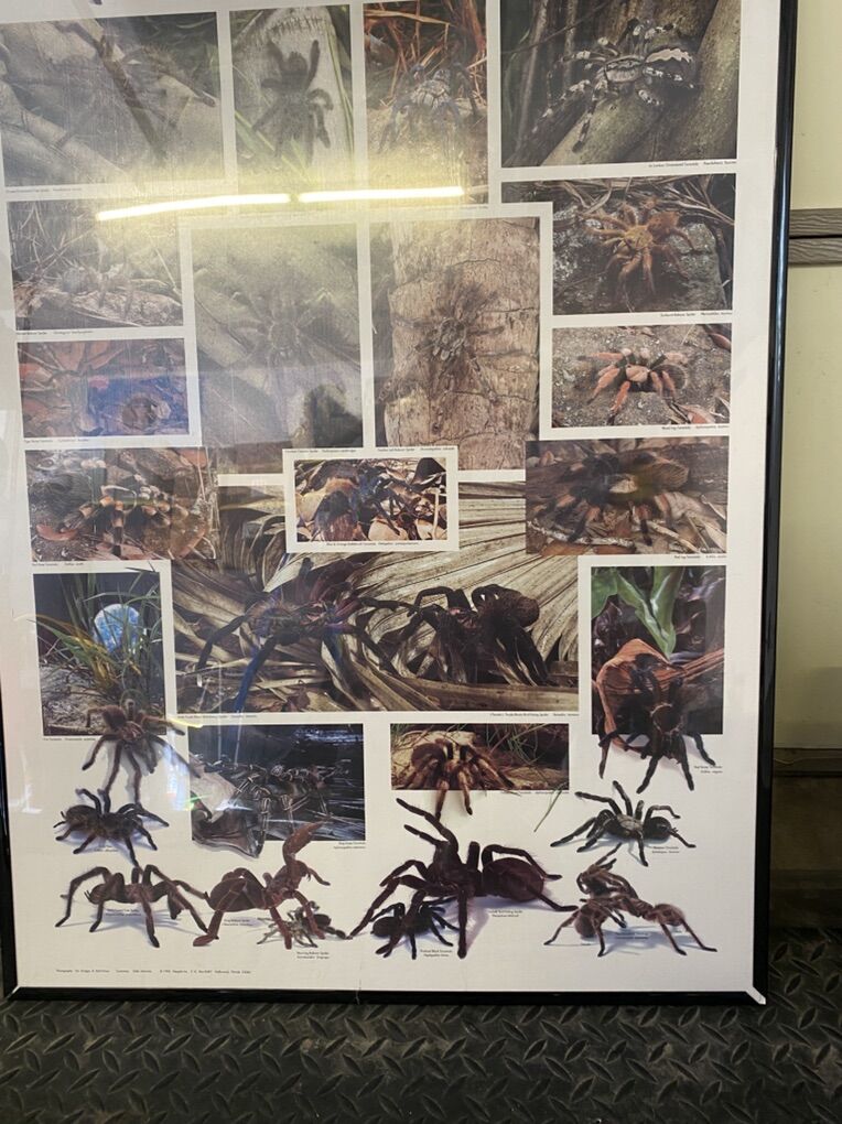VenmoAcrylic framed tarantula poster showing about 2 dozen species with names under photos. 2’ x 3’. Very good condition. $20 firm.