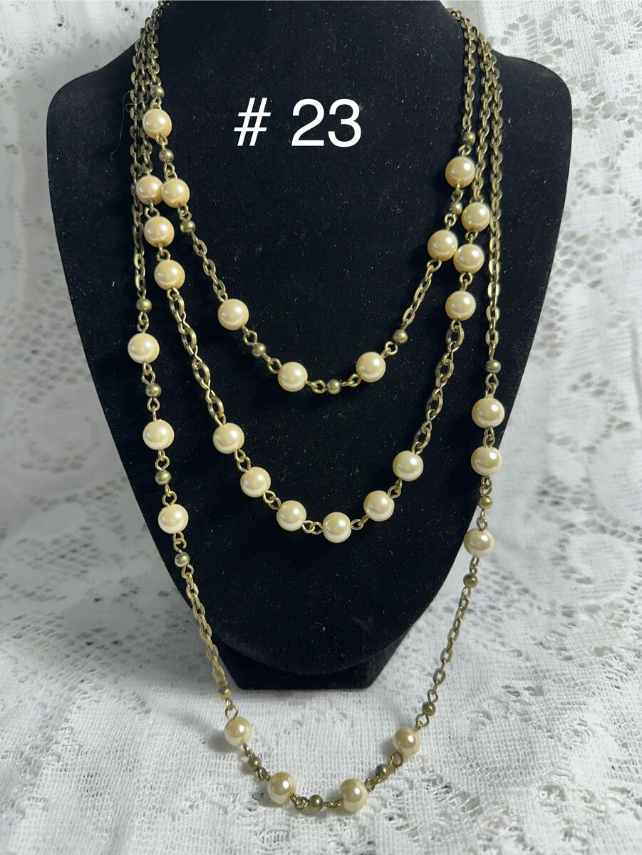 Tripple strand antiqued gold and cream pearl Necklace.