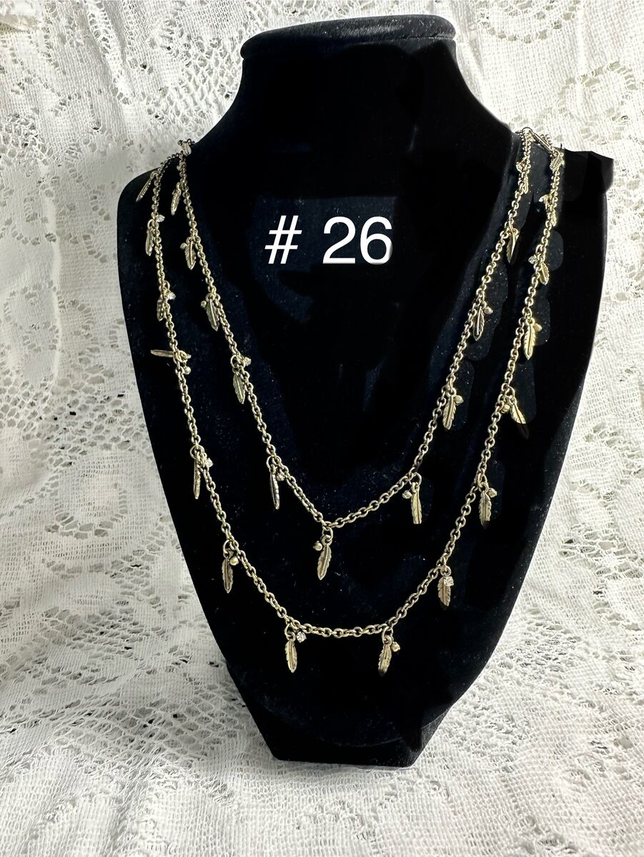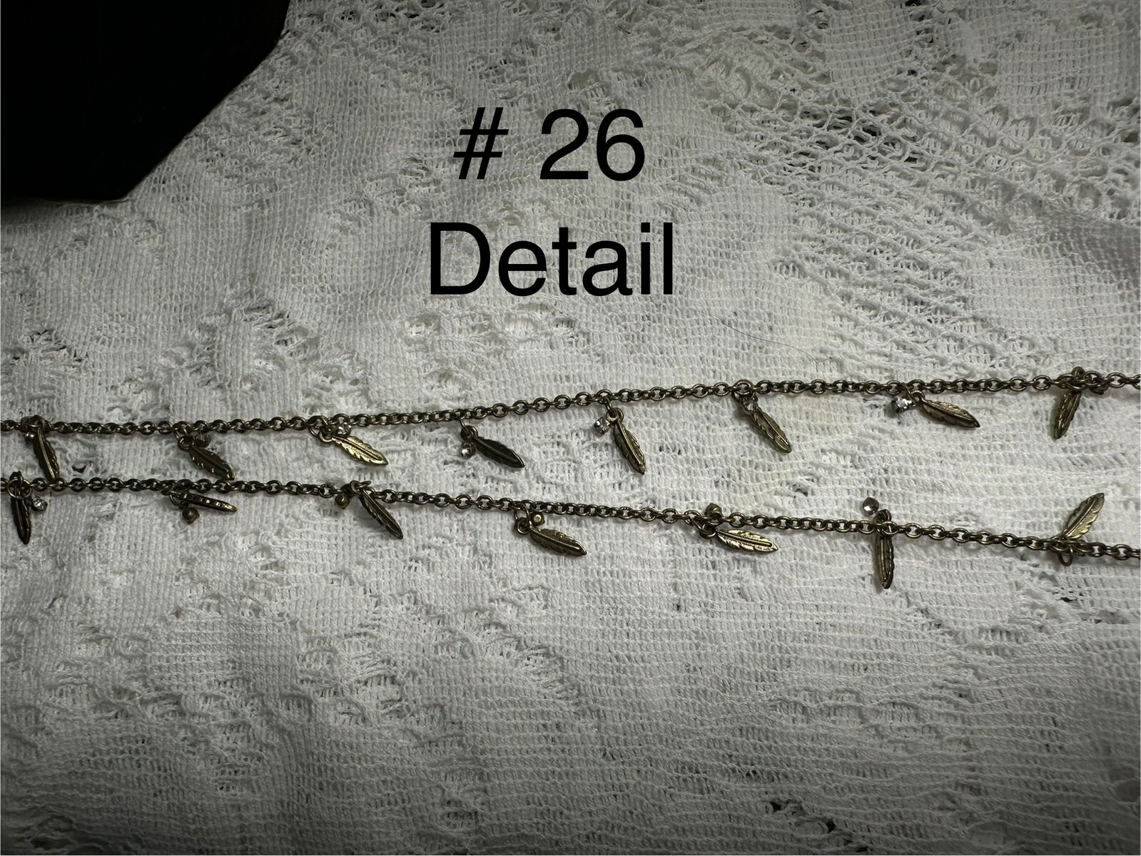 23" Antiqued Gold Chain with rhinestone and leaf charms. Shown doubled.
