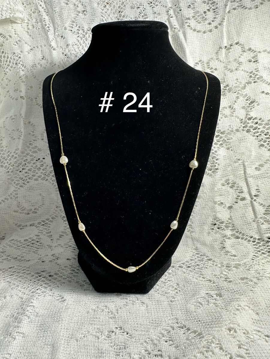 Serpentine gold chain with pear shaped pearls.
