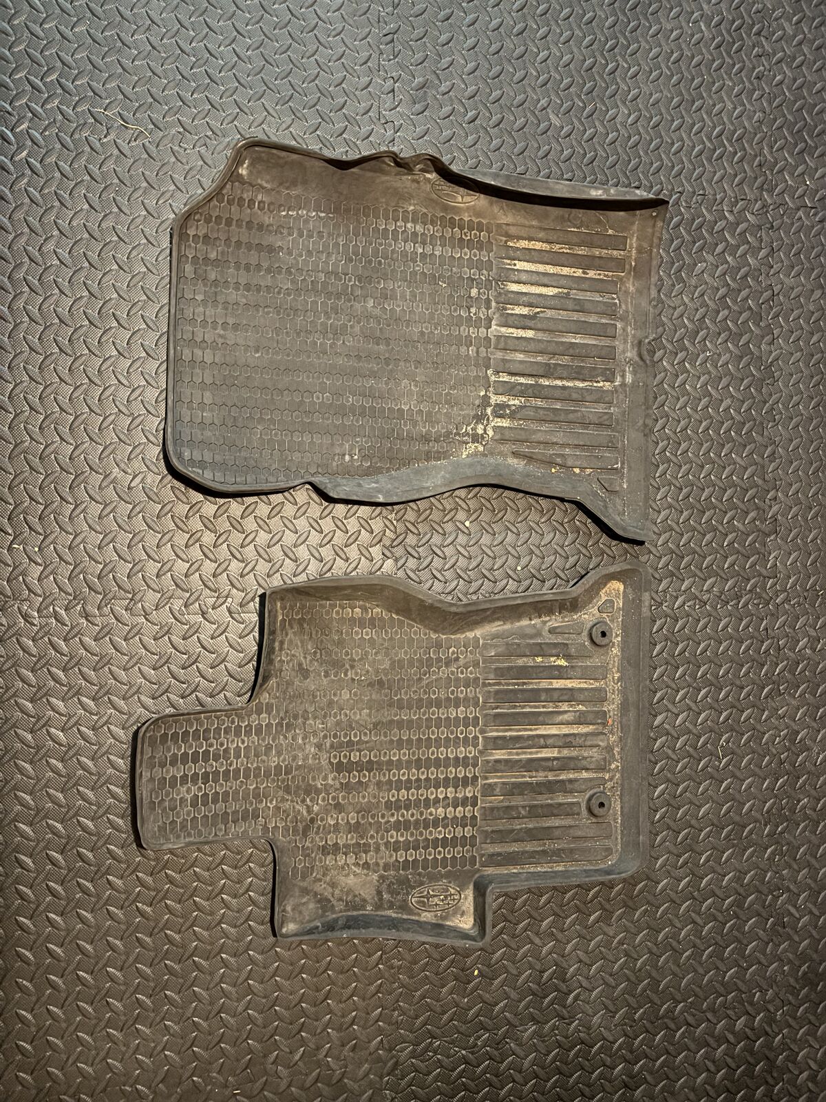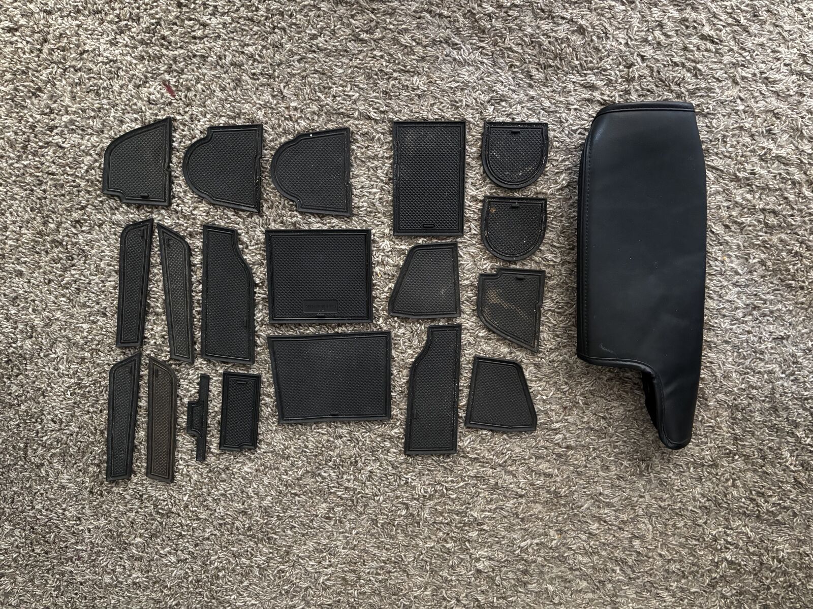 Selling because I no longer own car. Came out of 2021 Subaru Impreza, includes 2 front seat mats, 2 back seat mats, and one hatchback trunk cover. Includes inserts for all door handles and door pockets for an Impreza hatchback. Includes a black faux leather cover for the center console too. Minimal wear, just need a good wash. Buyer in charge of fit. All sales final.