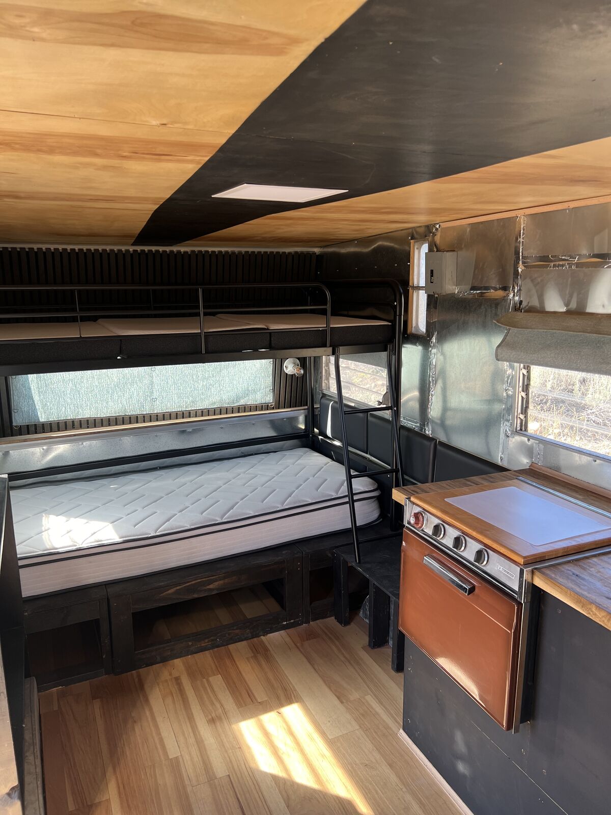 VenmoThe siding has all been taken off, sanded down and resealed over the last couple years. Water tight. Sturdy flooring and ceiling put in. Hard wood floor. solid chop block counter. Insulated and noise limiting walls. Sink that drains out the bottom(allowed for this year). Drives great. I have it home in Lehi now. No plumbing or gas. Electrical was working but started flipping the breaker and I don't have time to to figure out why. Plenty of potential but works great now as a solid sleeper, hunting trailer or kids play room. Two twin bunk beds. Comes with four jacks. Towing lights work great. Title in hand. 801-seven three five-3564.