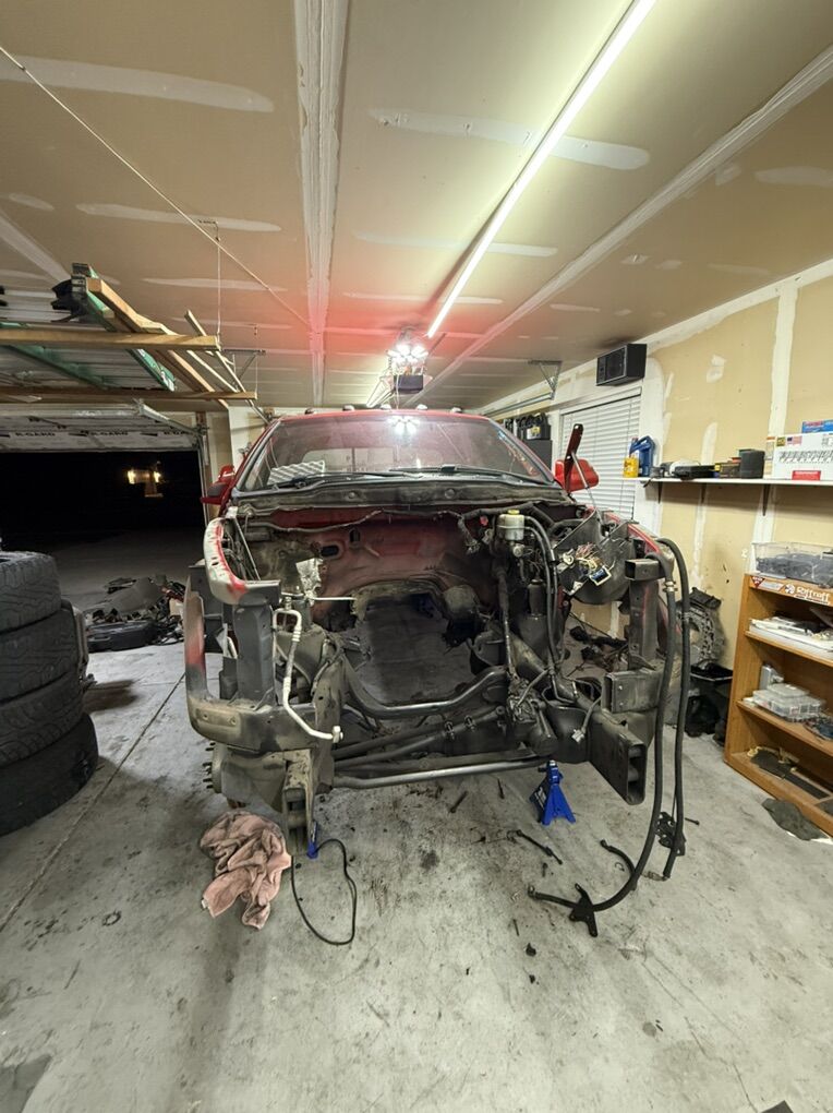 Cab Axles Frame Harness from front fender to tail lights Most of there interior panels and pieces Hood Fan and fan clutch Engine harness g56 with the trans harness 5.9 fuel rail and lines Rear drive line ccsb Newer starter Abs pump Brake booster 5.9 oil pan and pickup tube and stock griddle Washer bottle Drivers battery box Grid heater parts Gas pedal