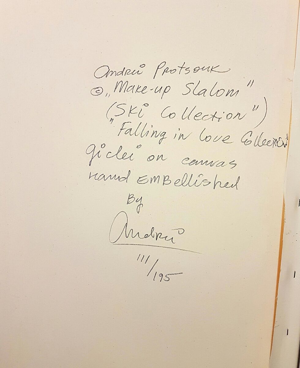 GooglePayFrom the Skiing Collection: Make-up Slalom 2003 Embellished Giclee on CanvasAndrei Protsouk no 111/295 Limited Edition Print : Embellished Giclee Canvas Size : 32x38 in | 81x97 cm Framed : 32x38 in | 81x97 cm Edition : From the Edition of 195