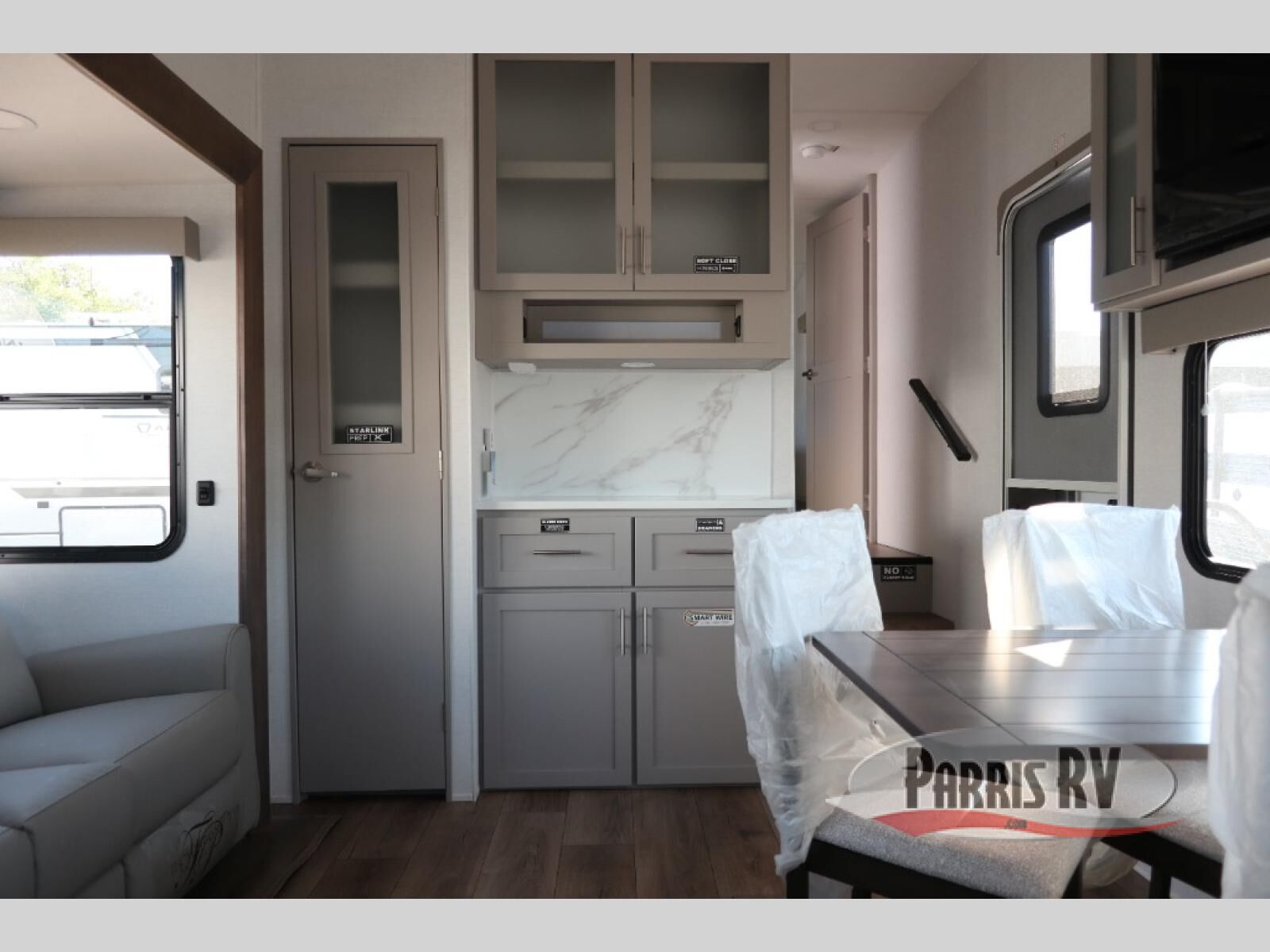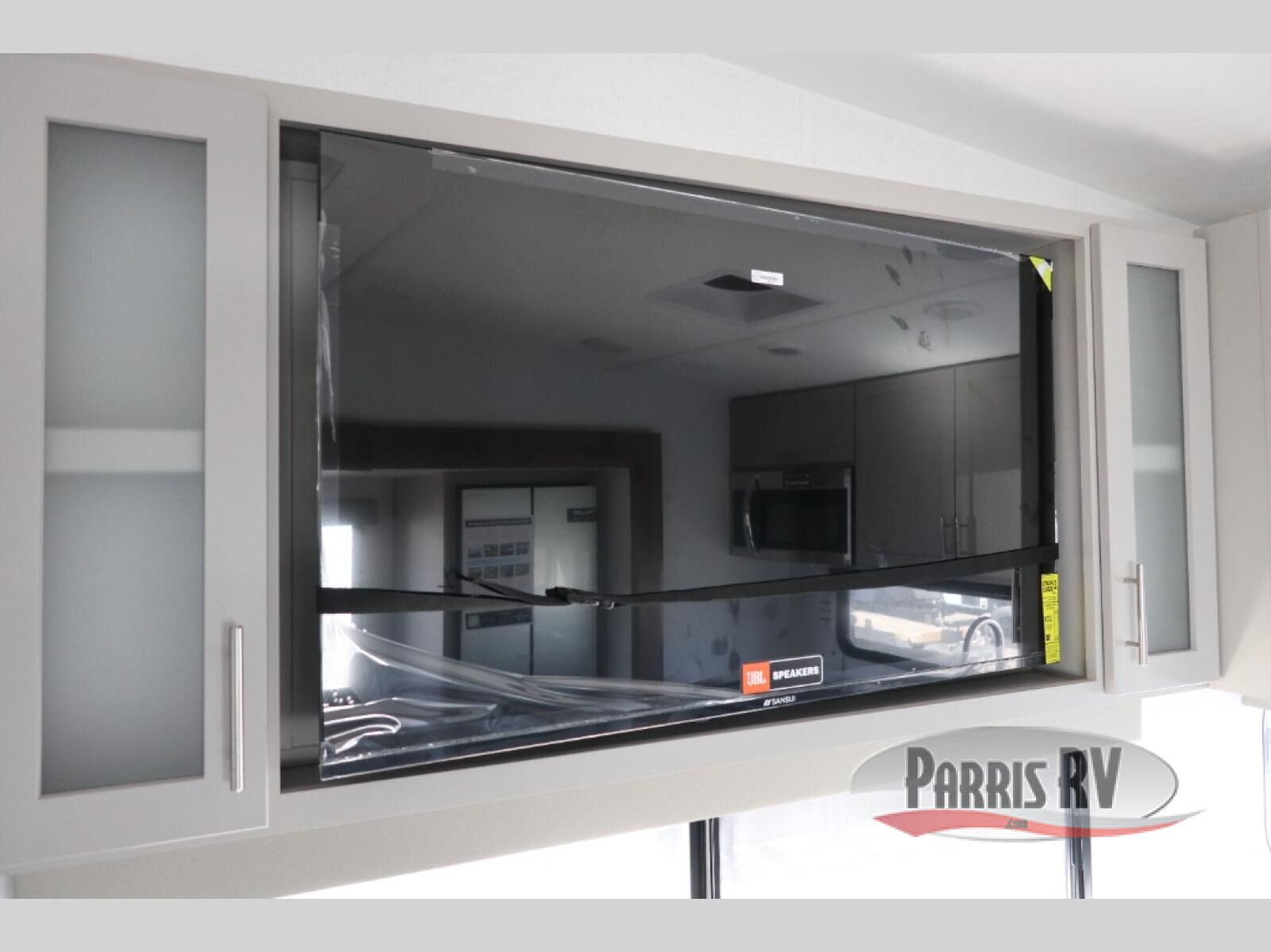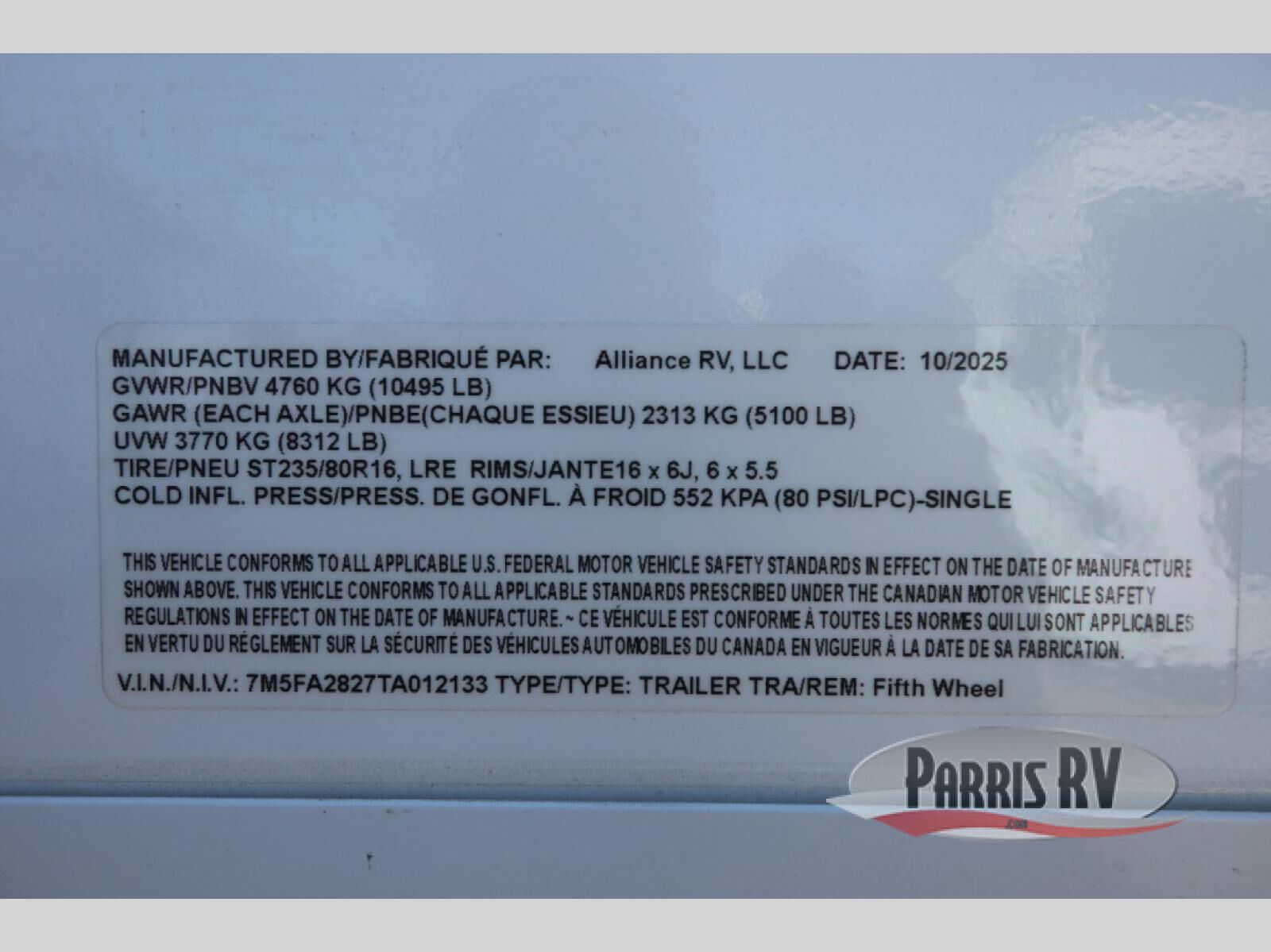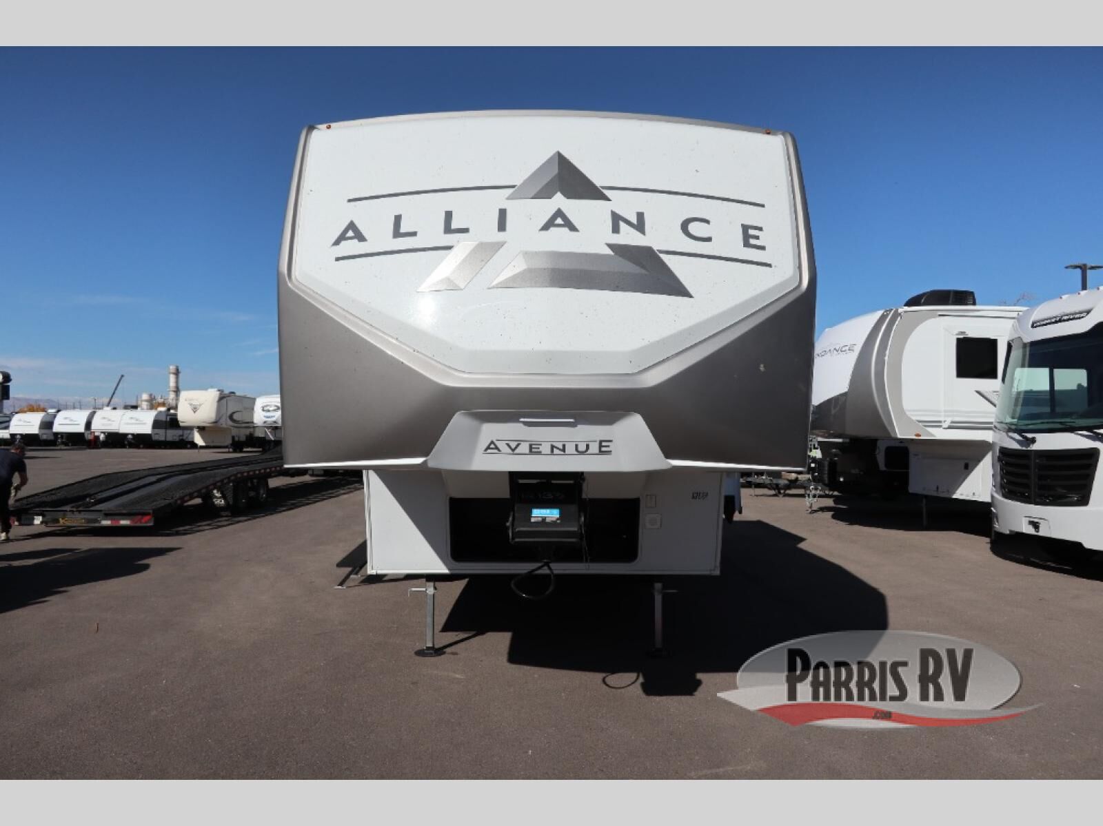 A benchmark chassis creates a space saver upper deck with each one of these Avenue All-Access fifth wheels by Alliance RV! The 101 in. wide-body construction gives you more room to walk around and the flush slide out floors throughout prevent any tripping. There are Azdel composite sidewalls inside and out, and a seamless fully walkable PVC roof for extreme durability and zero maintenance. You are sure to love no carpet throughout making each Avenue All-Access easy to clean and allergen free, not to mention pet friendly. You can maximize your space throughout with innovative storage solutions like the hidden storage behind the TV, inside the end tables, ottoman, and dinette chairs. These units also include the OTG Solar Package with a 200 watt solar panel, 15 amp MPPT charger, multiple outlets, and more to keep you powered up!