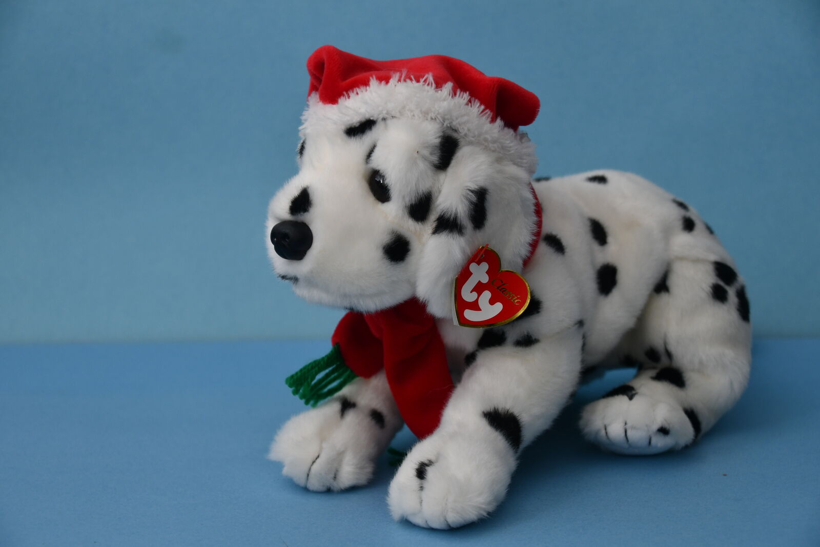 This NWT CHRISTMAS TY DALMATION DOG with TAG "WYNTER" is about 12" in length. It is CLEAN! Questions??? Please ask. We are lcoated in Plain City. Cash only please.