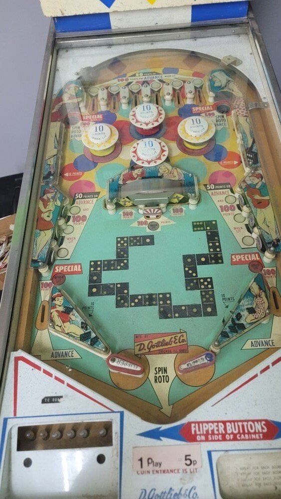 VenmoThis is a classic EM pinball from Gottlieb exclusively made for export to Europe. It is working. The score wheels turn, credit wheel works, targets and rollover switch work and coin mechs working. It needs a deep cleaning, rubber kit and some paint touch up. The backglass has a few paint flakes and cracks, but the colors are bright vibrant. No delivery, must come see. Firm on Price. Cash or Venmo.