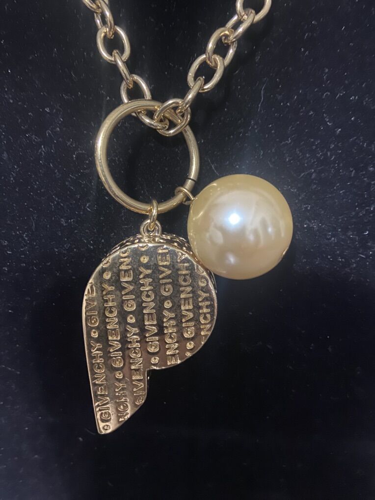 VenmoVtg GIVENCHY Logo Whistle & Large Pearl Pendant Necklace Signed Statement Runway Text 801-654-6752