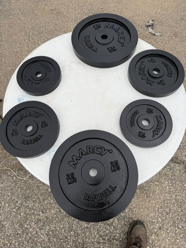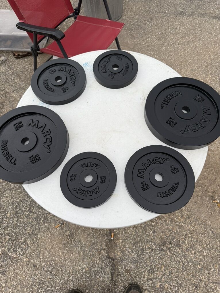Marcy Weight Plates Total Weight 85 pounds Two 25 lb Two 10 lb Two 7 1/2 lb Good Condition See Pics