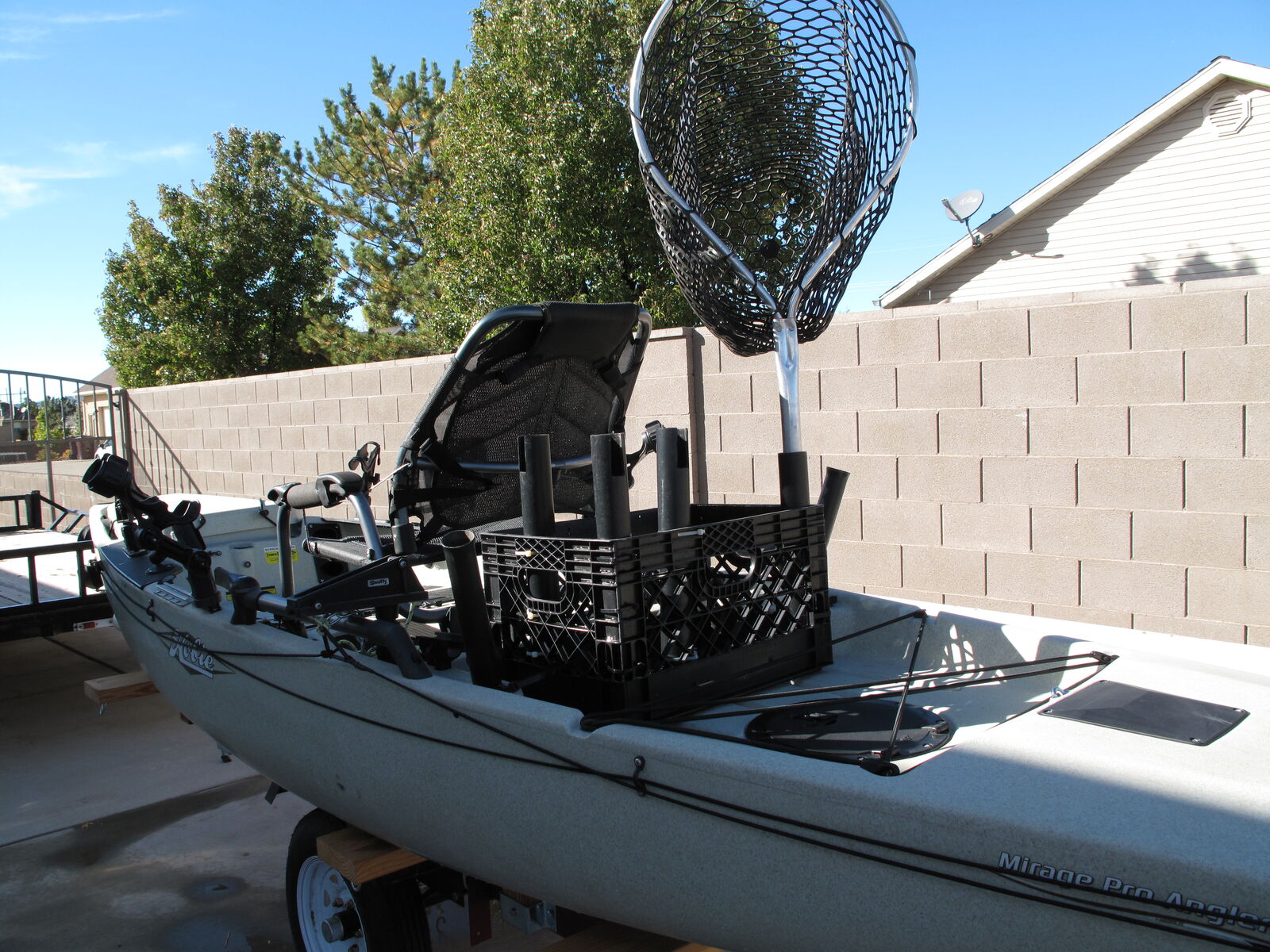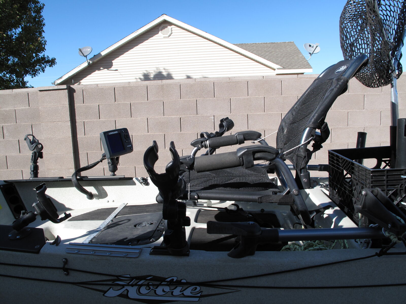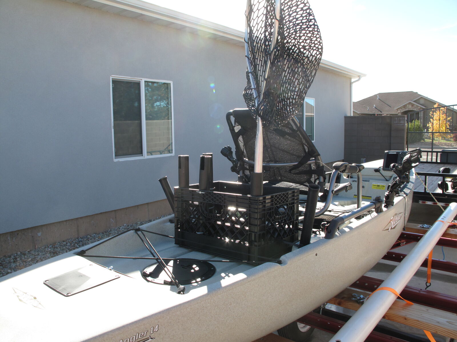 Hobie Mirage Pro Angler 14. With Lowrance Hook 5 Fish finder, 12v Lithium battery and charger, Anchor trolly system, Scotty rod holders, Cannon Mini downrigger, crate with rod holders. Hobie wheels (not pictured), Net, Life vest. Trailer with room for another kayak or canoe. Trailer has less than 300 miles on it. Like new. Kayak is in great condition.