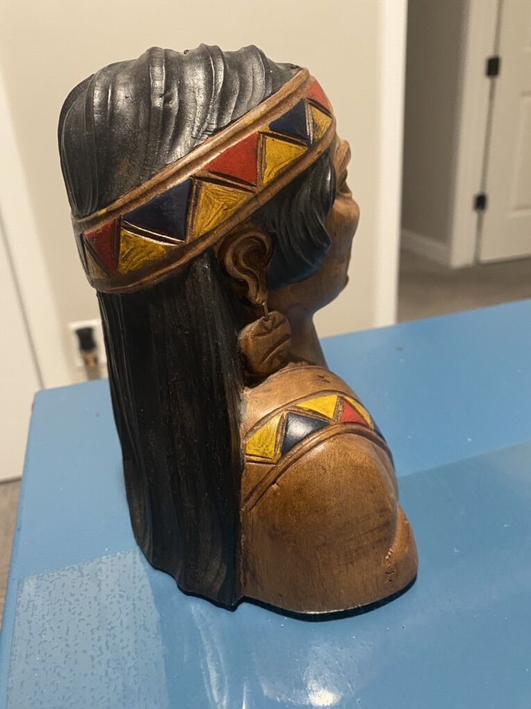 Such decorative busts became popular souvenirs and home decor items in the mid-to-late 20th century, particularly as interest in indigenous cultures and art forms grew. These pieces are valued by collectors of folk art, indigenous crafts, and those interested in Pre-Columbian history for their cultural representation and decorative appeal. Origin - Peru