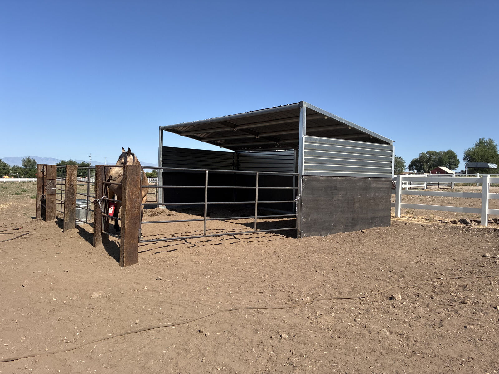 Our 12'x12' and 12'x24' Stockman Shelter is the perfect addition to any farm or ranch. This shelter is built with high-quality galvanized tubing, 3/4" kick and chew-proof rubber belting, and high-rib b-decking tin on the sides. Size options include a 12x12 starting at $5,430.47 and a 12x24 starting at $5,895, with various customizations to fit the needs of your ranch.