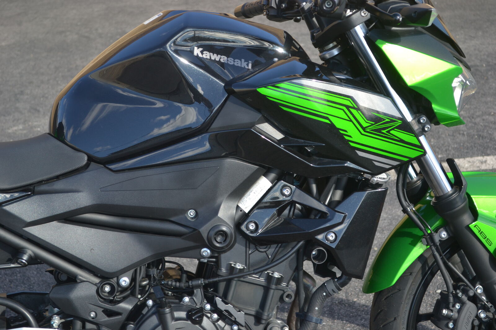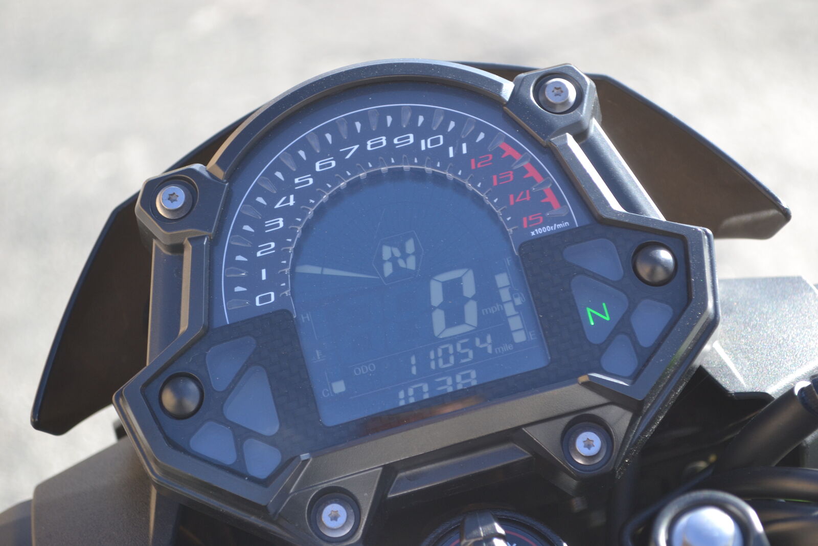 Great entry to the sport bike world with a 400cc engine, giving more power to grow into than a 300cc which many start with. This being the naked variant of the Ninja 400, it sits you more comfortably upright and is easier to maintain. The aftermarket exhaust on this one sounds great! The gauge display is very easy to read and won't distract newer riders. Running great with 11,000 miles and a clean title!