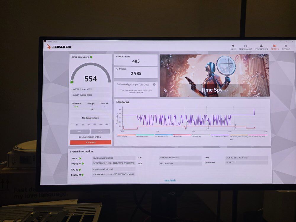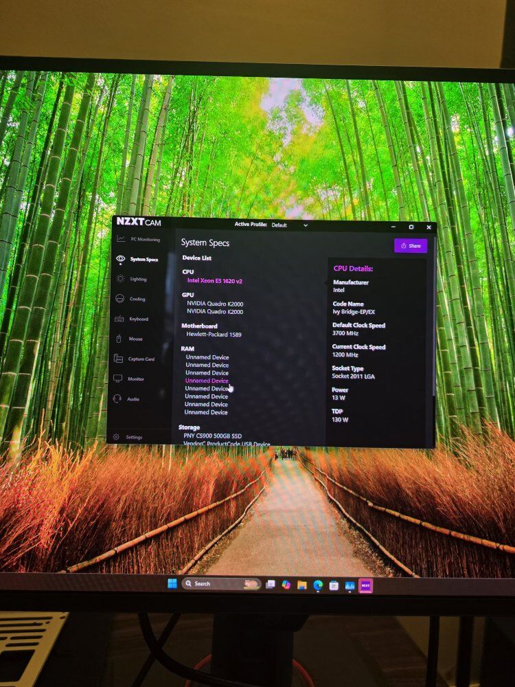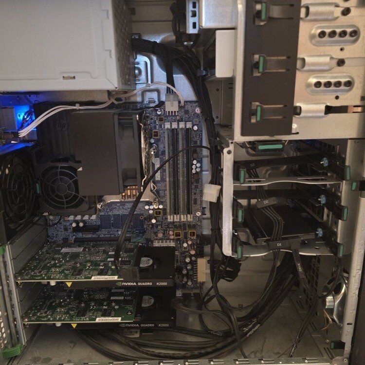 Specs: CPU: Intel Xeon E5 1620 V2 MB: HP 1589 Ram: 32gb Ram (4gb x 8) GPU: 2X Quadro K2000 PSU: 600W Storage: 512gb SSD