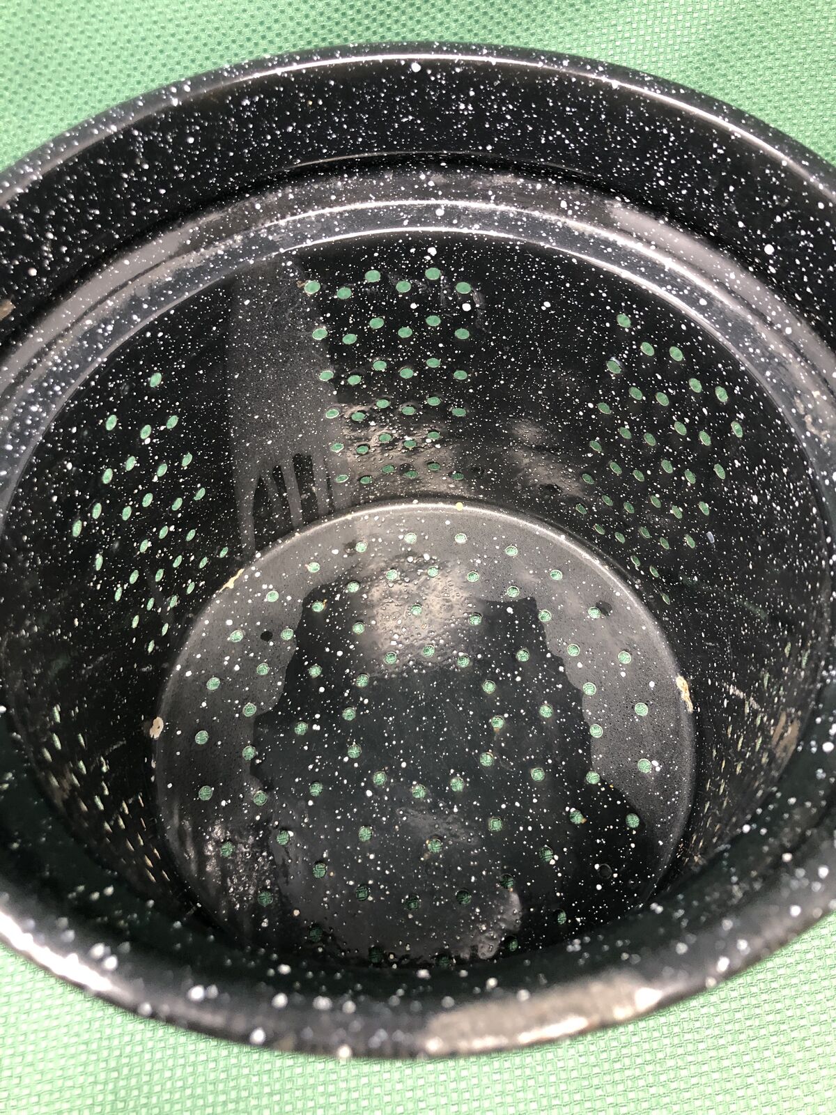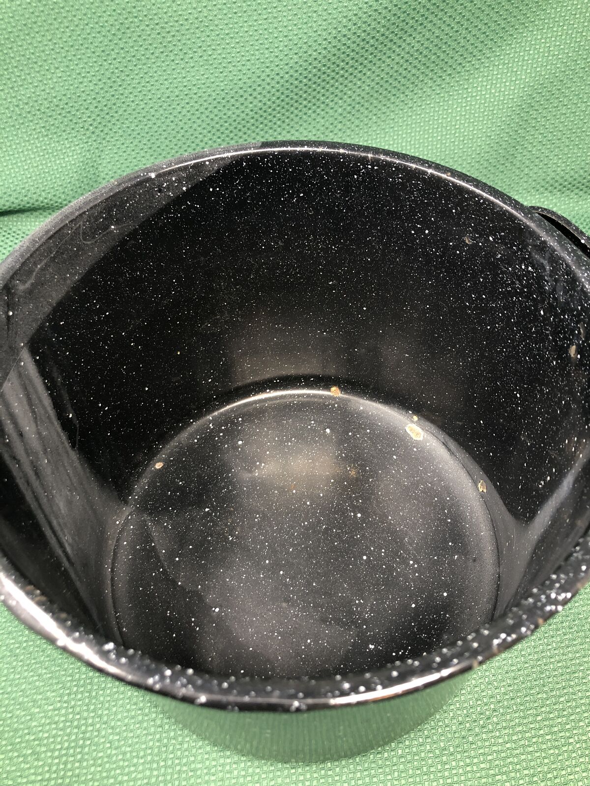VenmoClassic GraniteWare enamel-on-steel pot with matching lid and strainer insert. Perfect for cooking, canning, or boiling pasta, seafood, and vegetables. Durable speckled black finish with sturdy side handles for easy lifting.