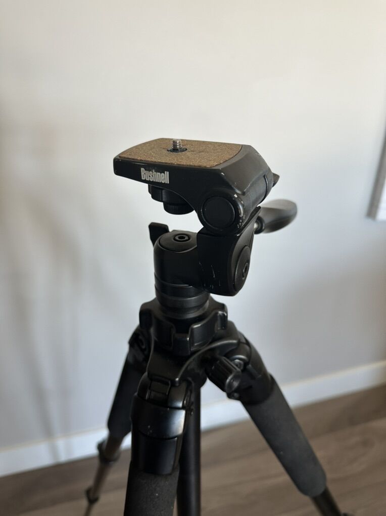 ZelleThis Bushnell sturdy aluminum tripod extends to 61”. Constructed with durable aluminum and equipped with non-slip feet, the Bushnell Advanced Tripod is built to last and offers reliable support on any terrain. Sells new for $143.