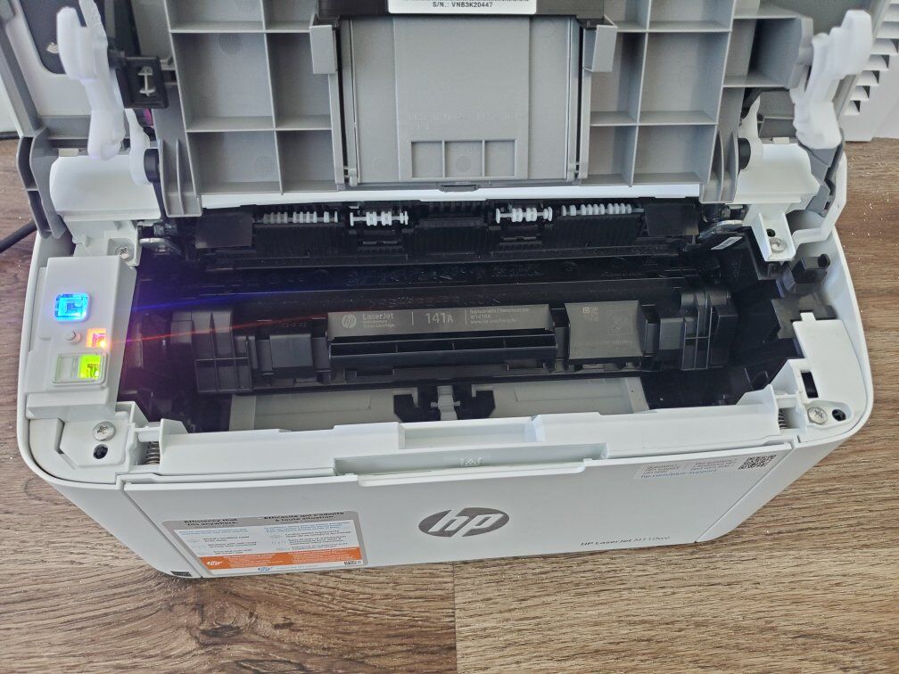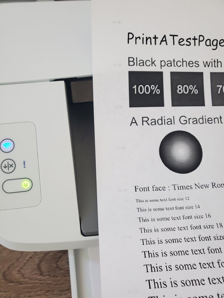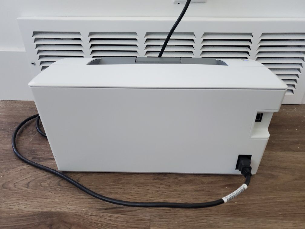 Printer is in excellent condition. Can be used for wireless Wi-Fi printing or connected to a computer via USB. The printer just tends to leave very light roller marks on the left side of the page (see up close photo).