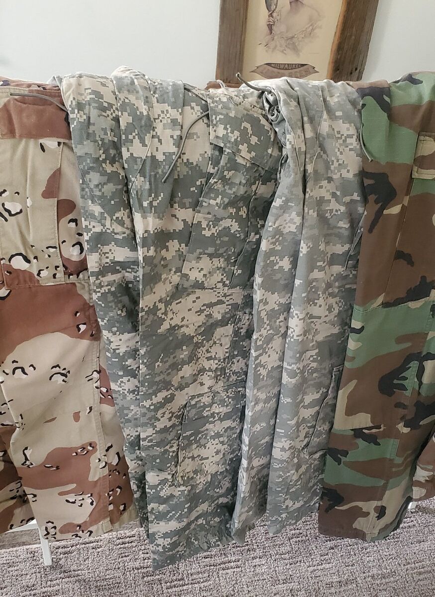 Venmo11 pairs of original camouflage pants--the good stuff. They are like brand new. Large: 35-39" waist. $15 per pair - firm.