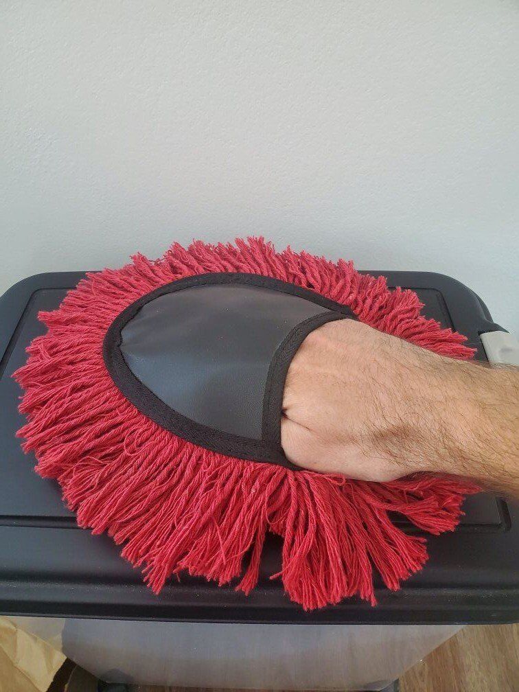 Duster glove is in great condition. Can be used for your car or around the house. Fibers are made of 100% cotton. Hand washable.