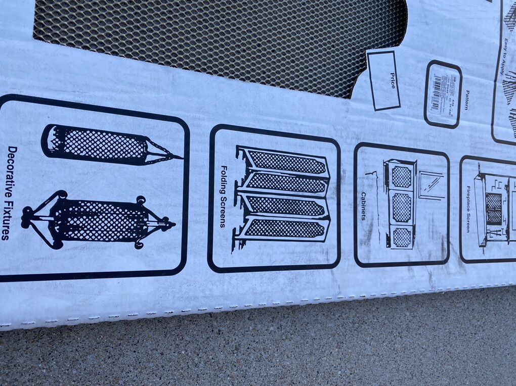 ApplePayM-D Building Products 57364 24 in. x 48 in. Brass Expandable Aluminum Sheet. Brand new. Could be used for fire place screen, cabinets, folding screens, decorative fixtures.