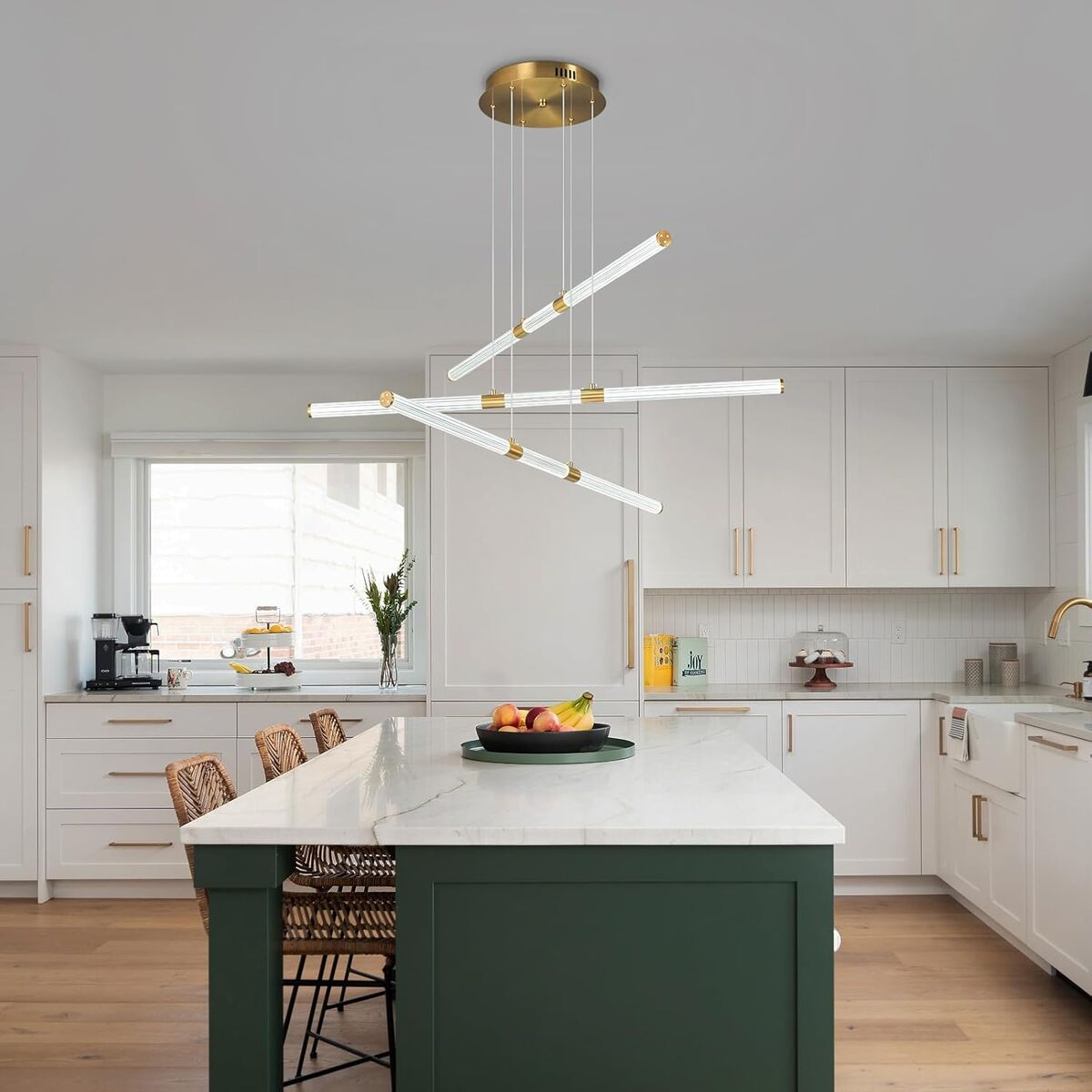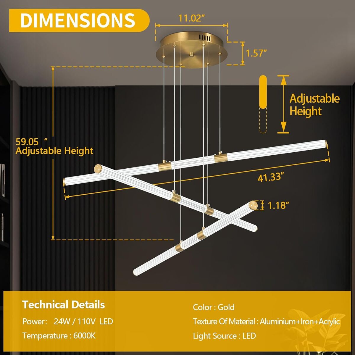 Retail Title: Gold LED Chandelier for Dining Room Adjustable Height Linear Modern Chandelier Light Fixtures for Kitchen Living Room Bedroom Restaurant Office(3-Lights)