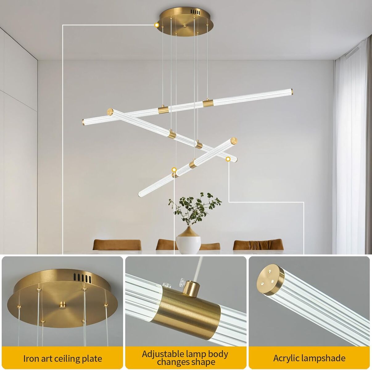 Modern Sputnik ChandeliersThis unique gold chandelier light fixture is made of high quality metal and high light transmittance acrylic tubes for bright light and wide lighting range. This elegant chandelier for dining room can bring a stylish atmosphere to your space and become the finishing touch of your home.