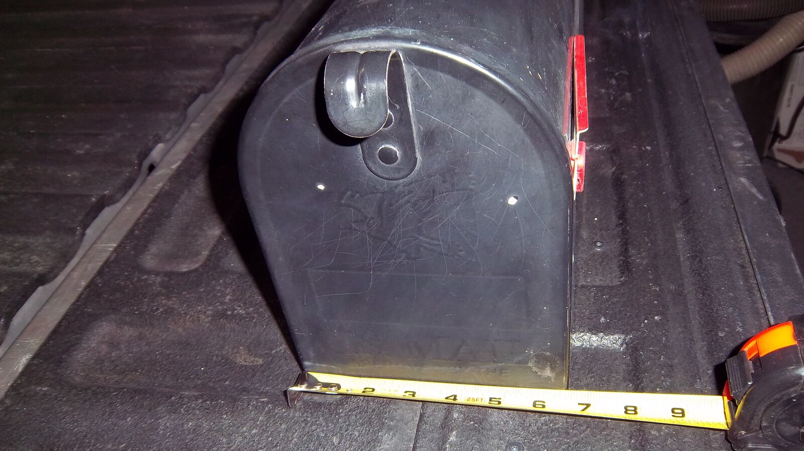 Black Mailbox 19" Depth x 8 3/4 Heigth x 6 7/8 Width. $25 with mounting bracket.