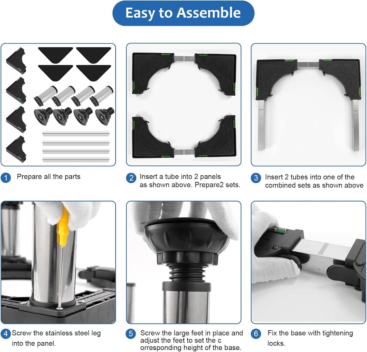 VenmoNefish Mini Fridge Stand Height 7"-8.4" Adjustable Washer and Dryer Stand with 4 Strong Feet Heavy Duty Washing Machine Stand Base Laundry Pedestal Universal Platform for Home 16-24 Inch Appliance Black-Feet Height 7"-8.4"