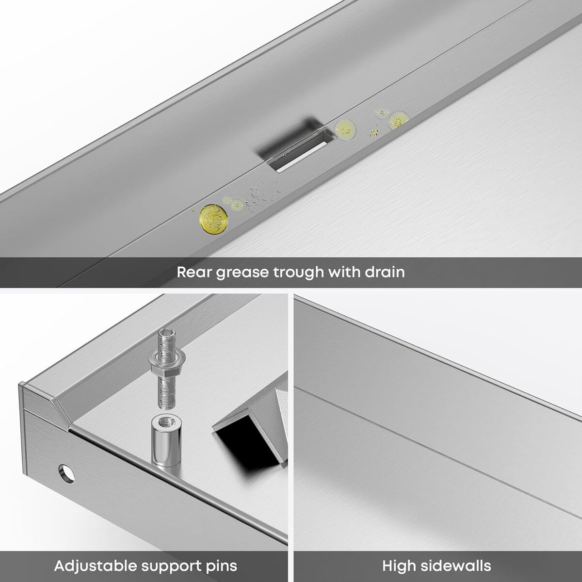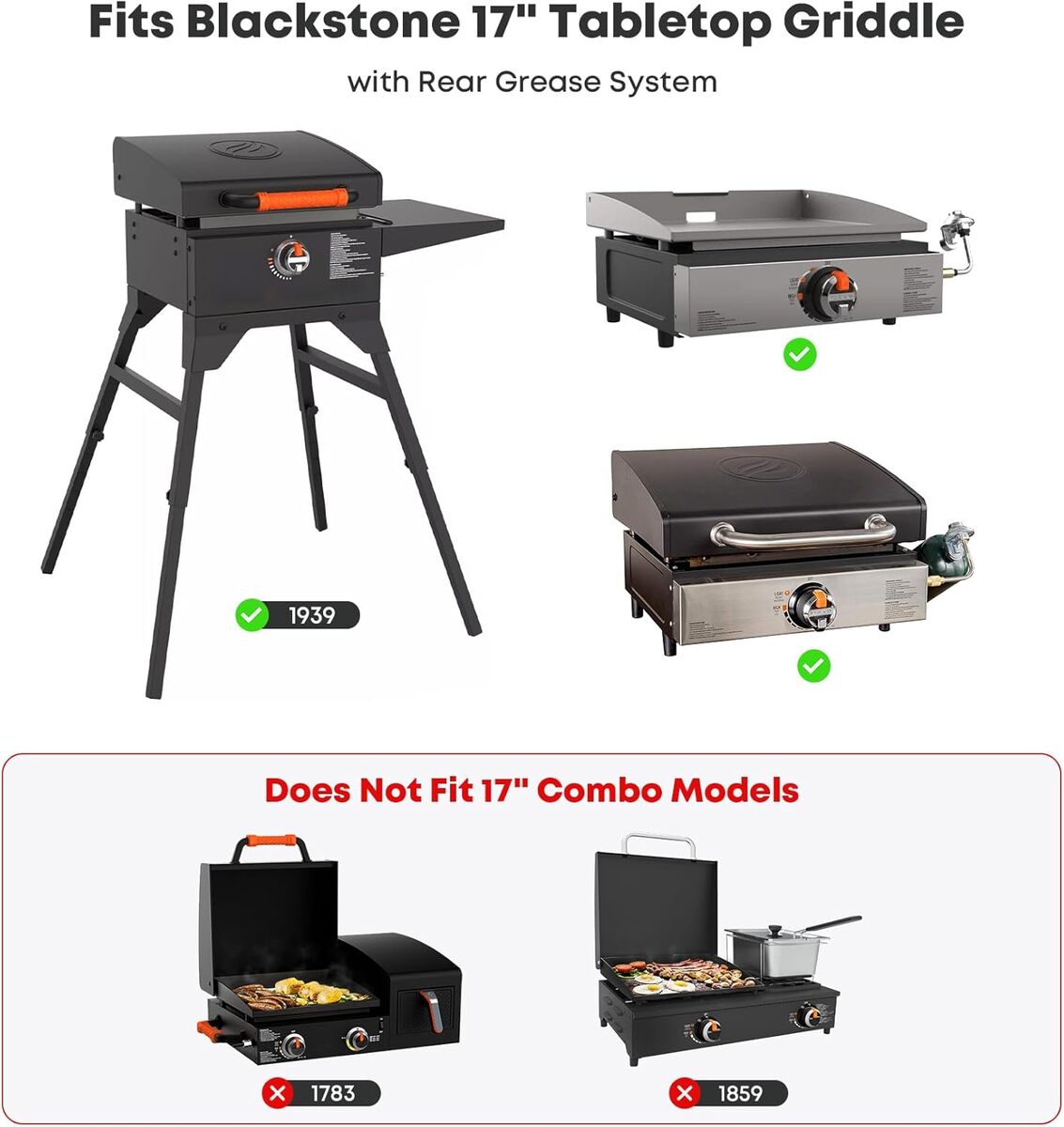 Compatibility: Fits Blackstone 17 inch tabletop grill station with rear grease system. Does not fit Blackstone 17" Combo grills such as 1783, 1859, etc. Built to Last: High-quality stainless steel provides superior corrosion resistance and durability. Stainless steel cooking surface for easy cleaning and maintenance. Rear Grease System: Full-width rear grease trough with drain prevents flare-ups and helps eliminate mess, making cleanup a breeze. Large Cooking Area: The griddle top offers 265 sq. in. of cooking space, sufficient to serve daily meals for family and friends. Enjoy the Outdoors: Cook sausages, eggs, pancakes, steak, fish, rice, vegetable, teriyaki style foods and more, enjoy outdoor grilling with Stanbroil stainless steel flat top griddle!