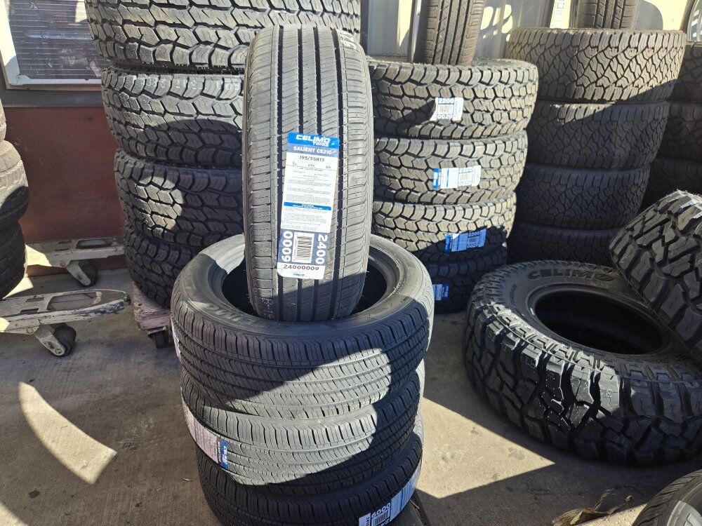 Brand new set of CELIMO SALIENT CS210 is 195/55R15 Free mount, balance, and brand new valve stems. $290+tax. $5 Tire disposal fee each 90 day financing available through Acima, message for details. Also make sure to check out our google reviews just search “Oliver tires” We carry a lot of other tire sizes new and used. As well as used and new wheels. If you have any questions call or text. Espańol; 8016885139 Office: 8016620227. Or visit us at 3010 west 500 south. Salt Lake City Utah. Shop #11