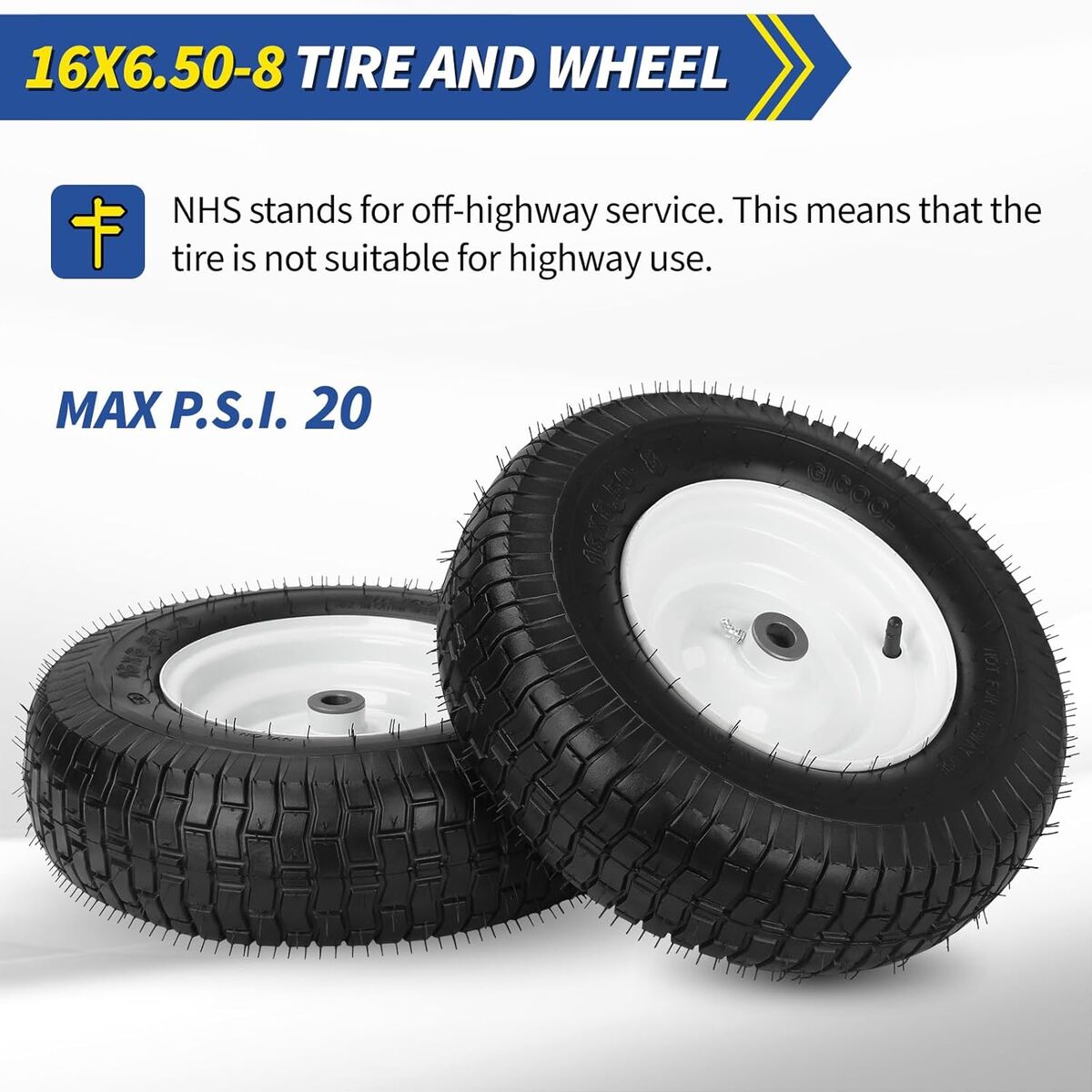 Venmo16x6.50-8 Riding Lawn Mower Rubber Tire and Wheel, 2 Pcs Replacement 16x6.5-8nhs Garden Tractor Lawnmower Tyre, with 3/4" & 5/8" Bushing, 3"-4.5" Centered Hub